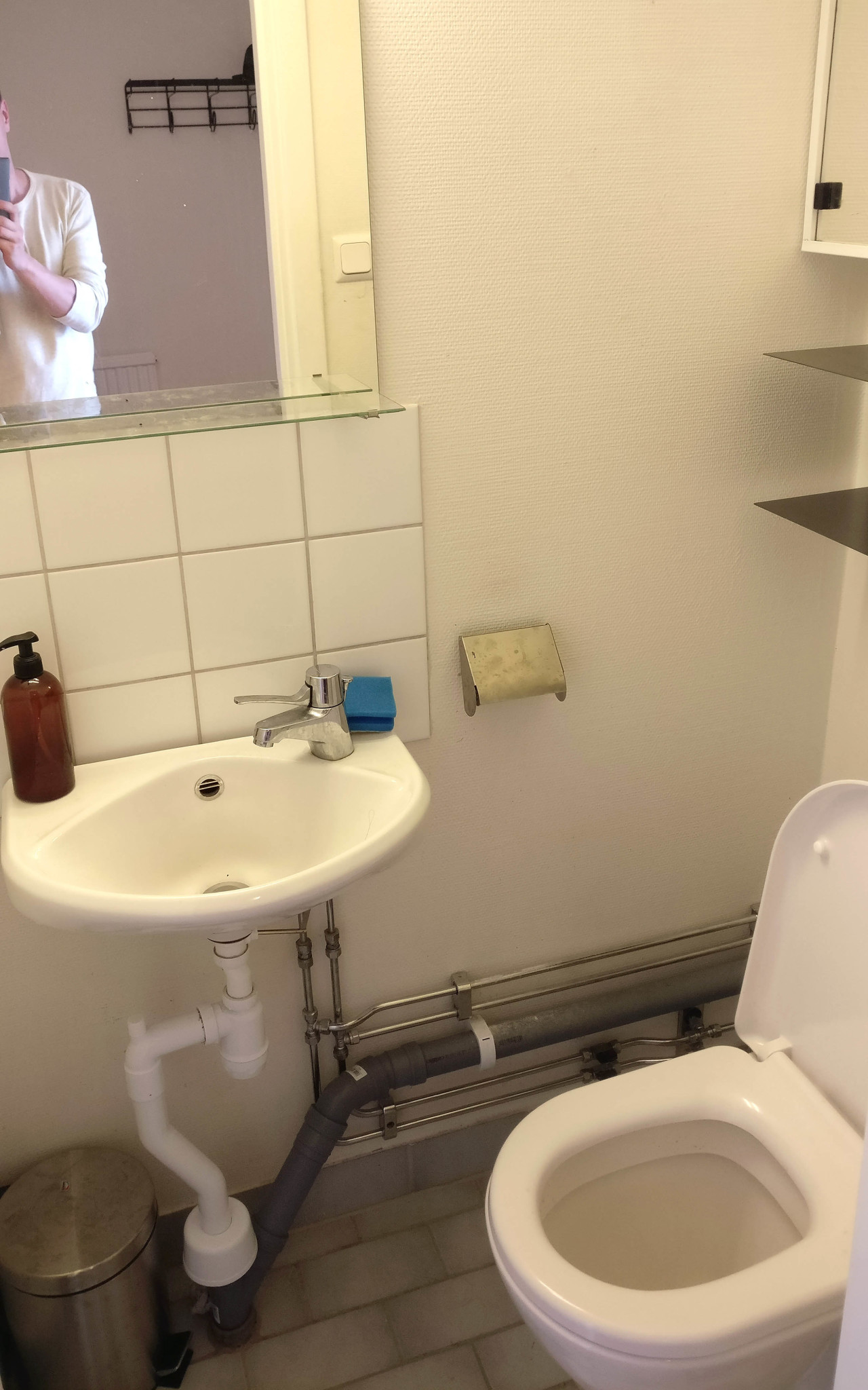 Jag har bifogat en ungefärlig planlösning på uthyrningsdelen samt en bild på toaletten som den är nu. Jag vill ha toa + handfat sen med, men det måste inte vara samma som sitter där nu.