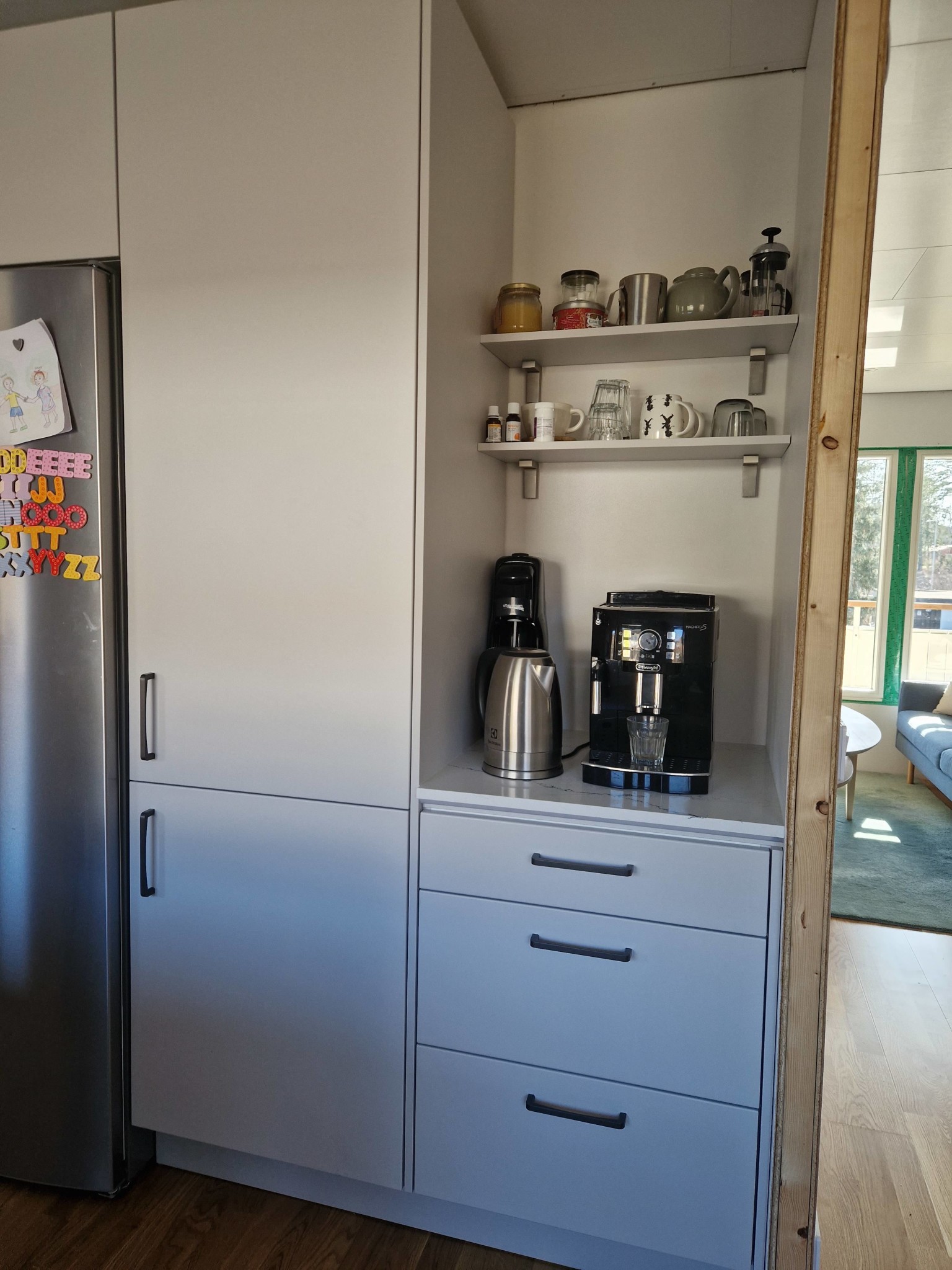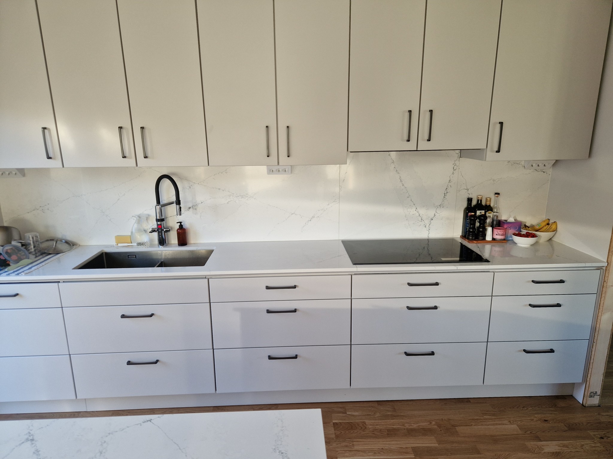Vi behöver ev. göra en speciallösning och sätta täckskivor på 1,4 cm istället för Distanslister på 2 cm mellan bänkskåp väggskåp pga nyttja bänkytan på bästa sätt. Nån annan som satt täckskivor istället för Distanslister i sitt kök och har bild på detta? Är rädd att det ska se för fjuttigt ut med 1,4 cm mellan. Man gör ju detta för att det ska se platsbyggd ut, men får ju inte se fjuttigt ut, då kan vi lika gärna vara utan och sätta stommarna direkt bredvid varandra istället.