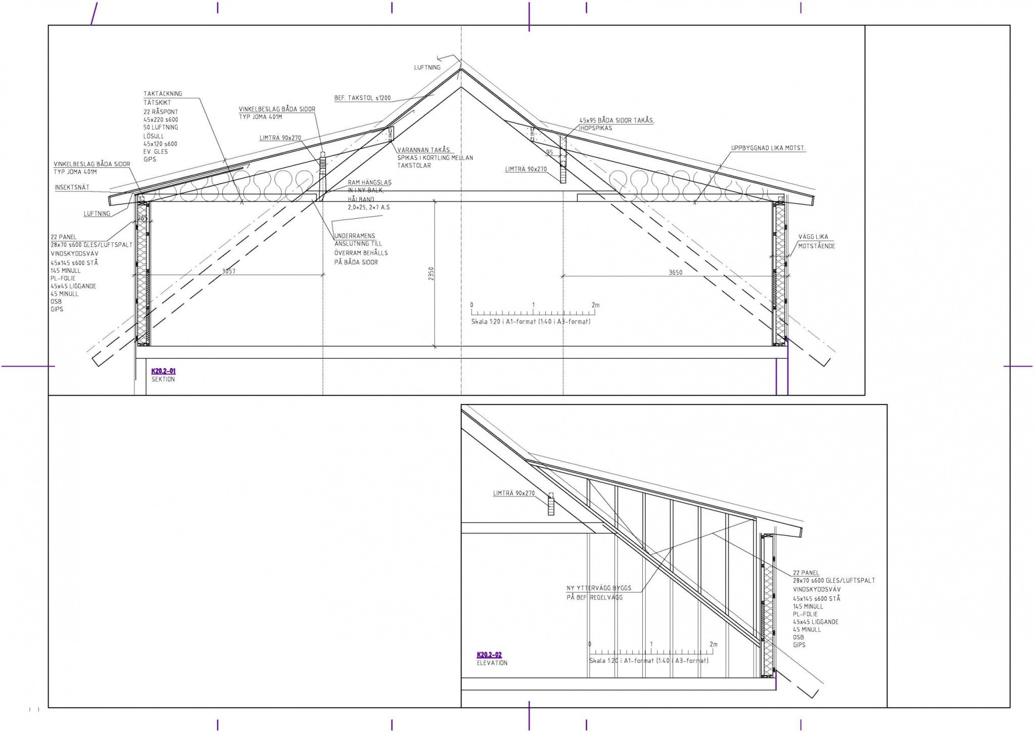 Vi byggde två takkupor förra sommaren som är ca 3,3 m vardera. Vi hade en konstruktör som tog fram nedanstående ritningar till oss.