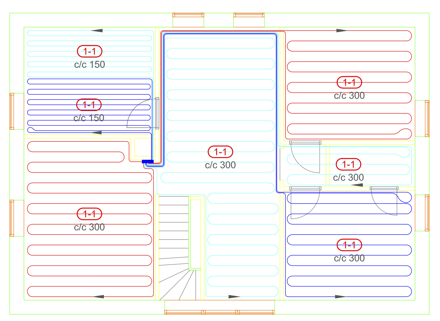 Jag hade också tänkt fräsa spår i spånskivor då dessa redan är lagda. Problemet som jag har är att jag riskerar försvagningar i spånskivorna då jag måste fräsa längs med bjälklaget för matarslangarna (som mest 7 st slangar). Bjälklaget ligger med CC40cm förutom de två vänstra rummen som har bjälklag på CC30cm. Bjälklaget är dessutom förstärkt med 2st kortlingar per bjälklagsfack.