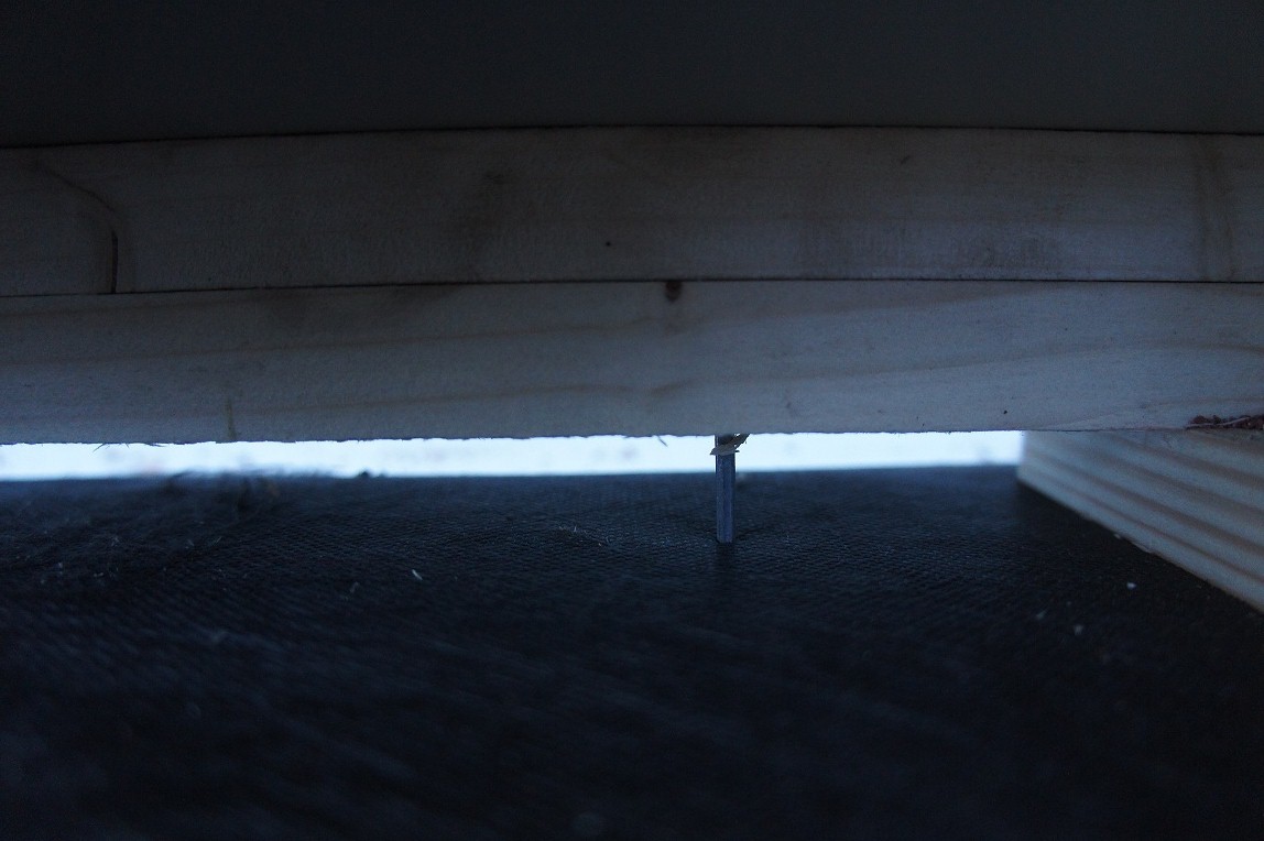 I den nedre läkten har man spikat en takfotsplåt, där spiken på några ställen gått ner i pappen under.