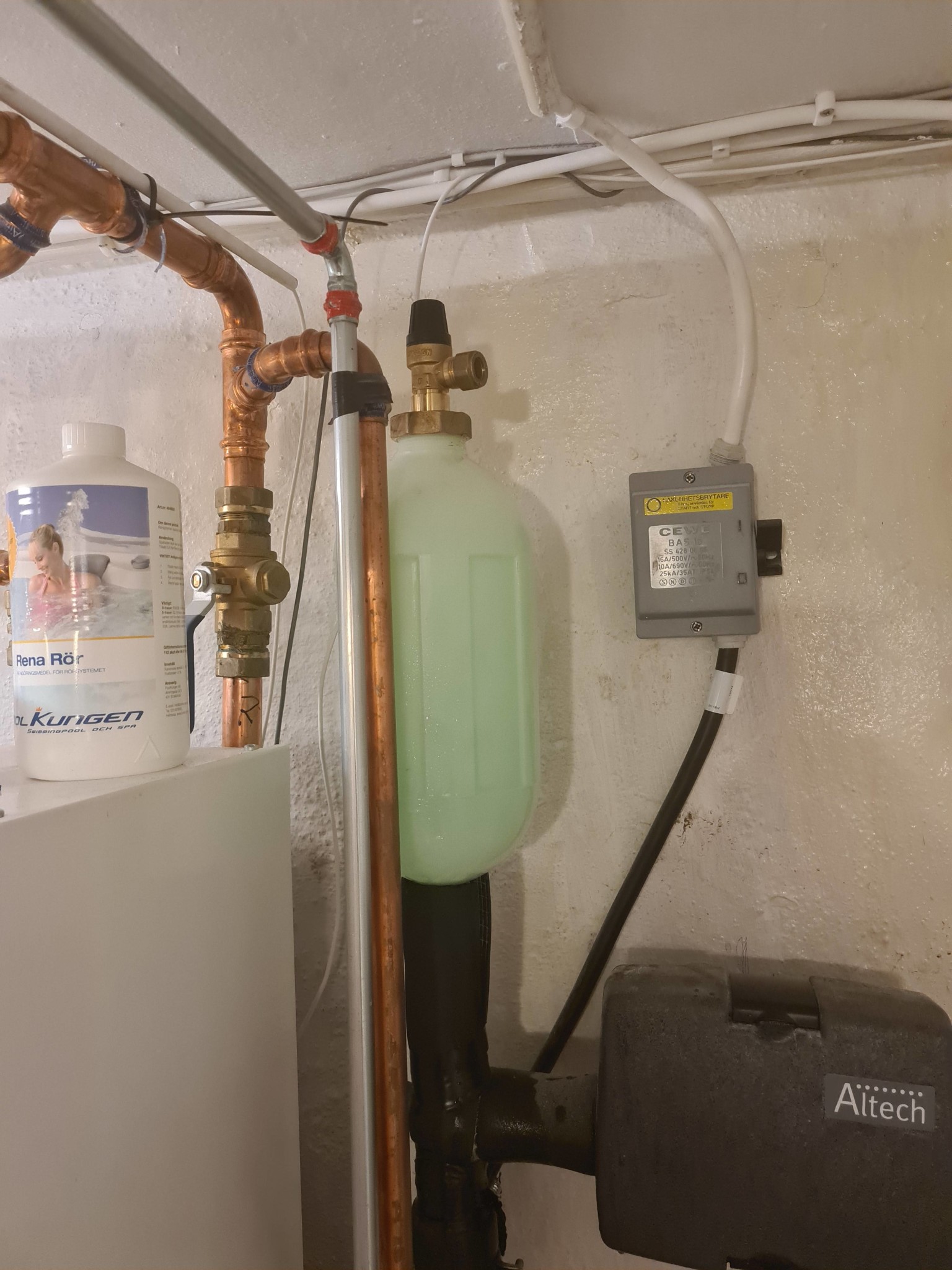 Denna tank som finns på bild har nu börjat svämma över någon alkoholluktande vätska, ca 1dl om dagen. Den är lopplad till bergvärmen