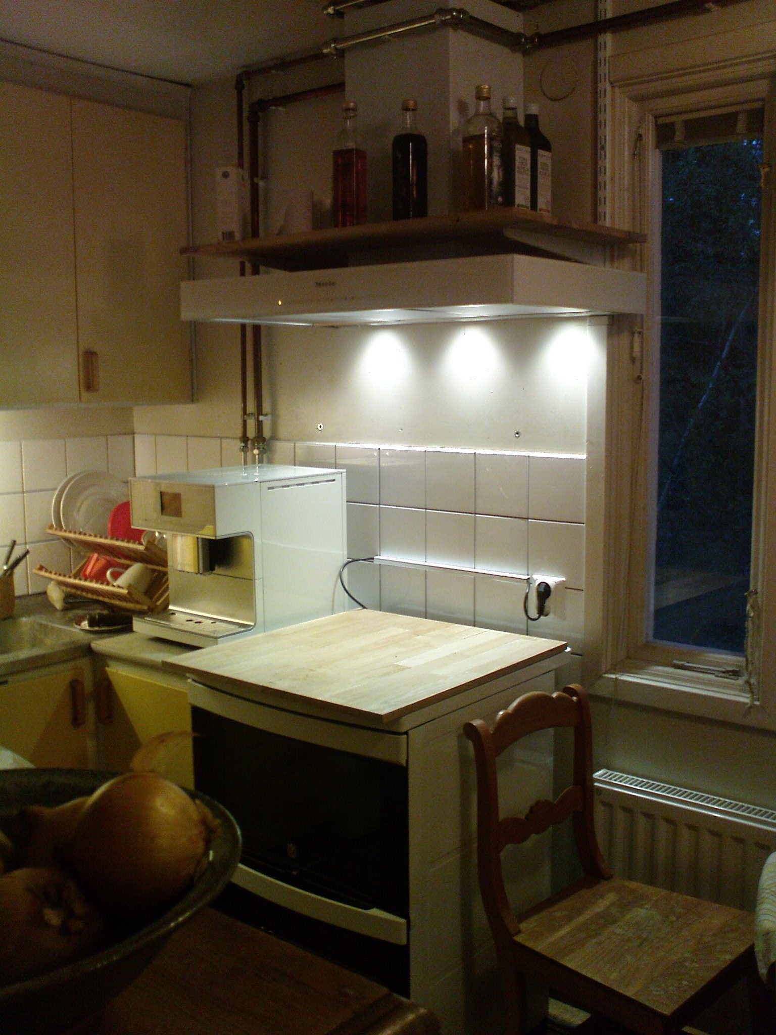 Hyllan ovan fläkten limmade jag ihop (till 50 cm bredd