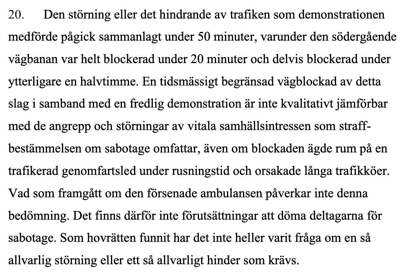 Host, host... HD frikände just Rädda våtmarkerna-aktivisterna från sabotage när de klistrade fast sig på en motorväg i Solna.