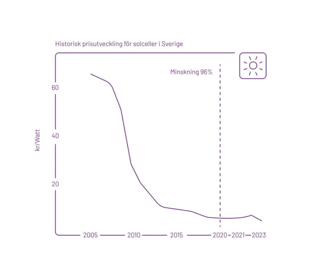 De första som satsade på solceller gjorde nog ingen vidare affär, priset på solceller har rasat