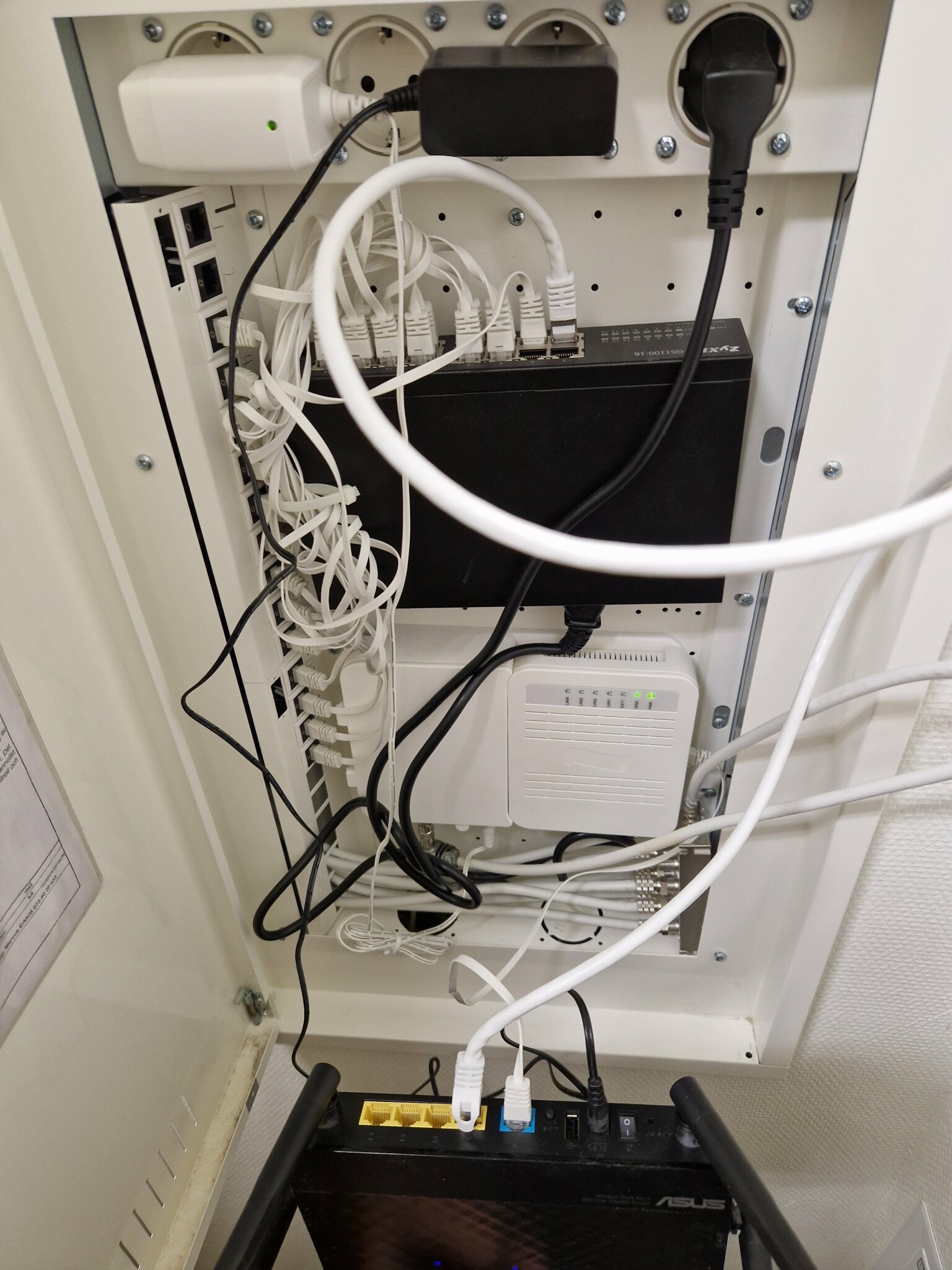 Jo fick göra precis så hos en dotter som först protesterade men nu har det varit tyst ett par månader så hon blev nöjd. Sedan i många lägenheters teknikskåp är ju uttagen märkta med nummer och sedan i teknikskåpet likaså, så det är enkelt. Satte sedan in en billig kinarouter som körs som AP mot balkongen så blev det perfekt även där. (via en switch då i teknikskåpet)D Dilato skrev:Alternativt om du behöver placera routern på en annan plats för att få bättre wifi-täckning.