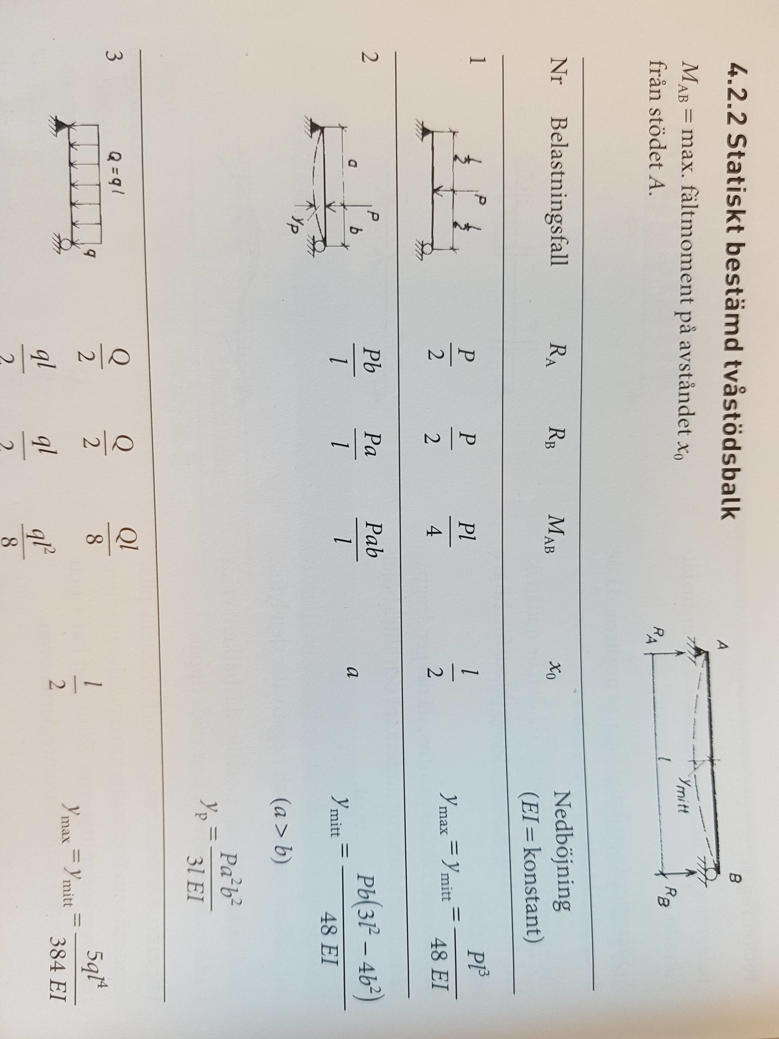Kan någon hjälpa mig med vad för formel jag ska använda för nedböjning av ett stålrör med två statiska krafter.