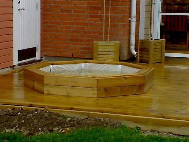 Så byggde jag in en liten barnpool i mitt soldäck när jag byggde det. Jag gjorde en åttahörning som är ca 20 cm djup från golvets nivå och 20 cm hög över golvets nivå. blev kanonsnyggt, tycker jag och barnen.