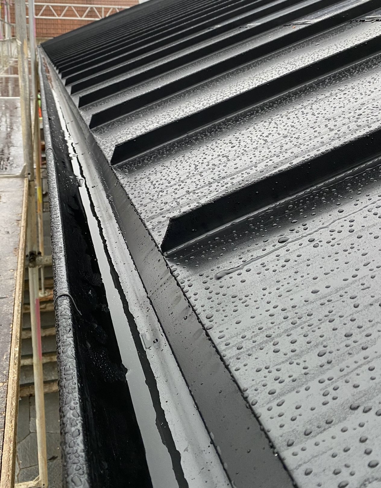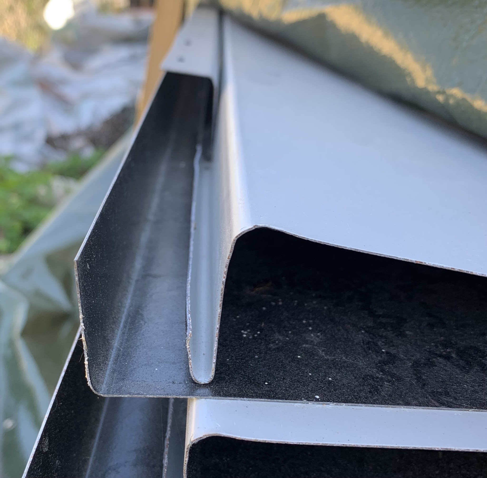 Annars borde klamrerna som man viker runt en enkelfals vara synliga.. och ett enkelfalsat tak utan klammer kommer att lämna/läcka vid nästa storm...