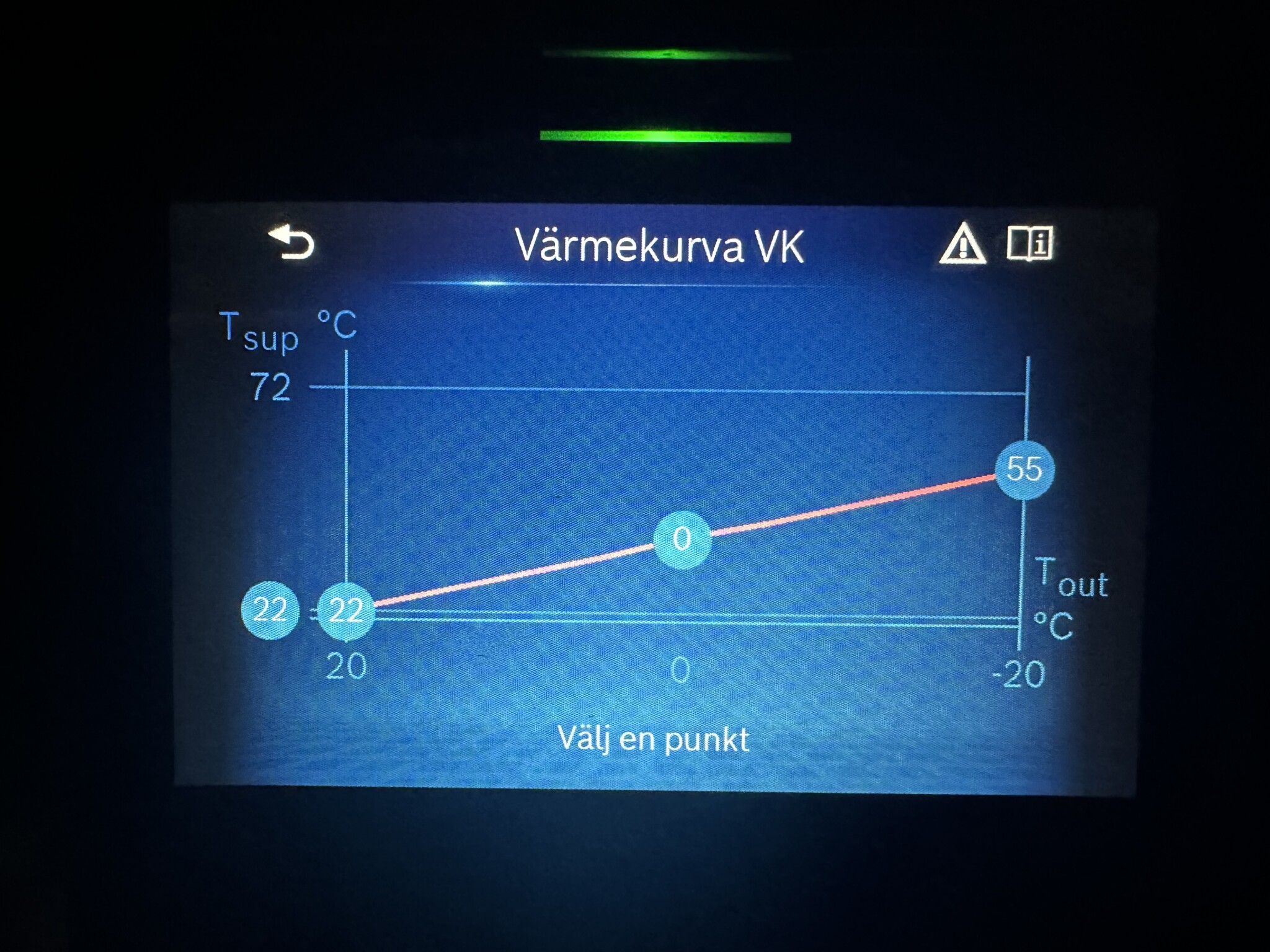 Steg 2 är att justera in värmekurvan, lutning och parallellförskjutning så att det blir "rätt" temperatur i alla rum oberoende utetemperatur.