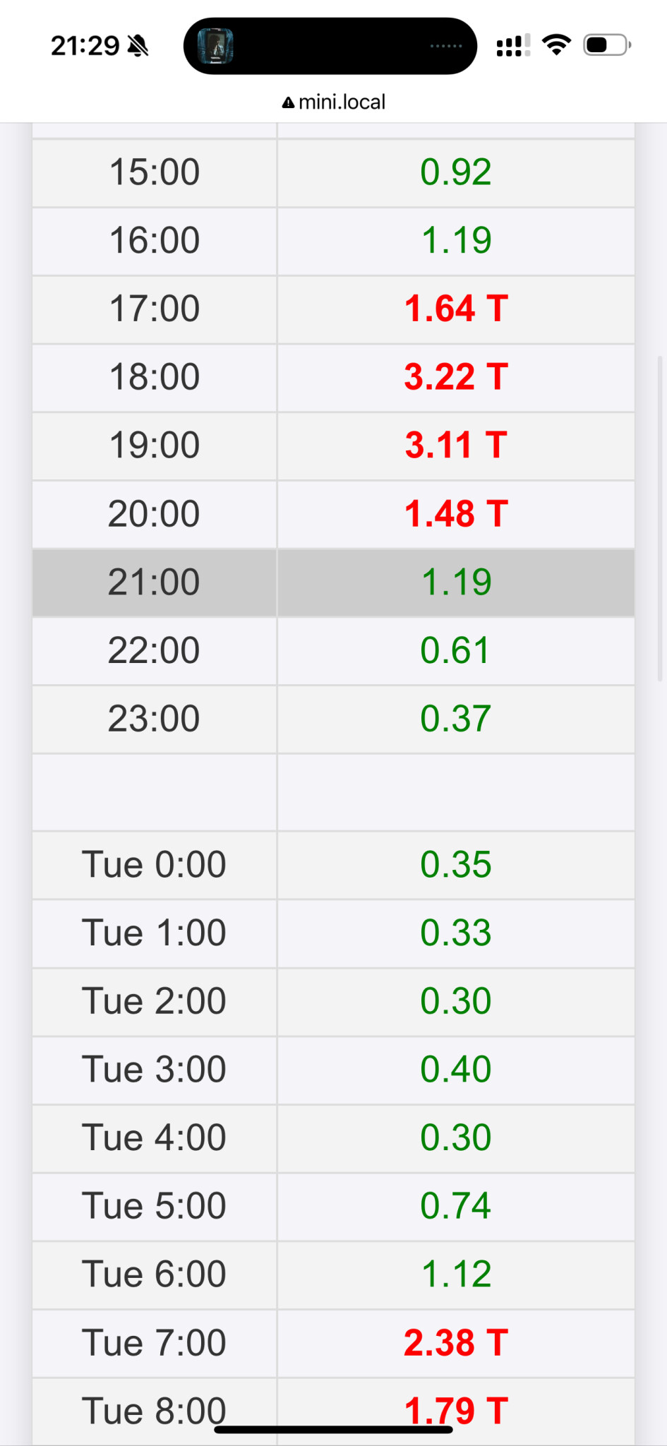 Men jag har satt ett gräns att pannan blockeras om priset är över 1,3kr och max 6h stopp innan den tvingas igång. Väljer såfall den billigast priset från 4-6h att starta.