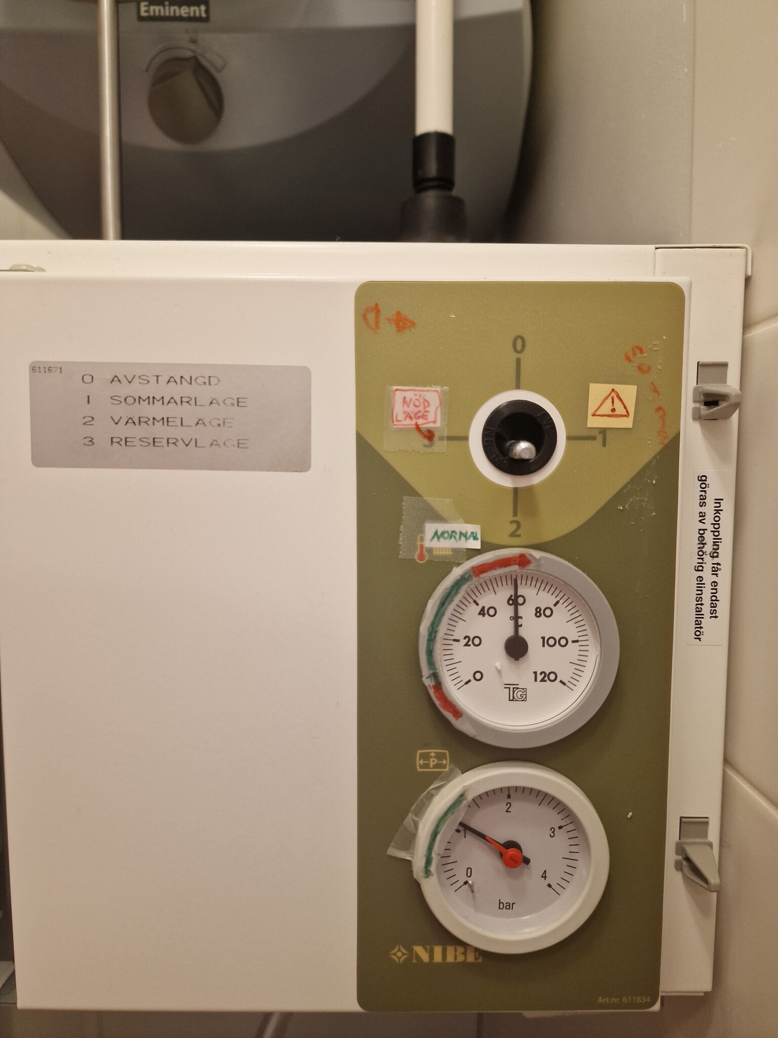 Hej och tack för respons! Jag stoppade huvudet i sanden men nu måste jag ta tag i det här igen 😊. Vet du hur jag sänker panntemperaturen? Eller är det den som är kopplad till givaren utomhus?A Avemo skrev:Jag tror att termometern på din andra bild visar panntemperaturen och inte framledningstemperaturen. Det finns markeringar på de tre vreden som antagligen är vad förra ägaren ansett var bra inställningar. Vill du sänka temperaturen inomhus är det främst det översta vredet du skruvar på. Men Panntemperaturen kommer antagligen inte att sjunka bara för att framledningstemperaturen sjunker.