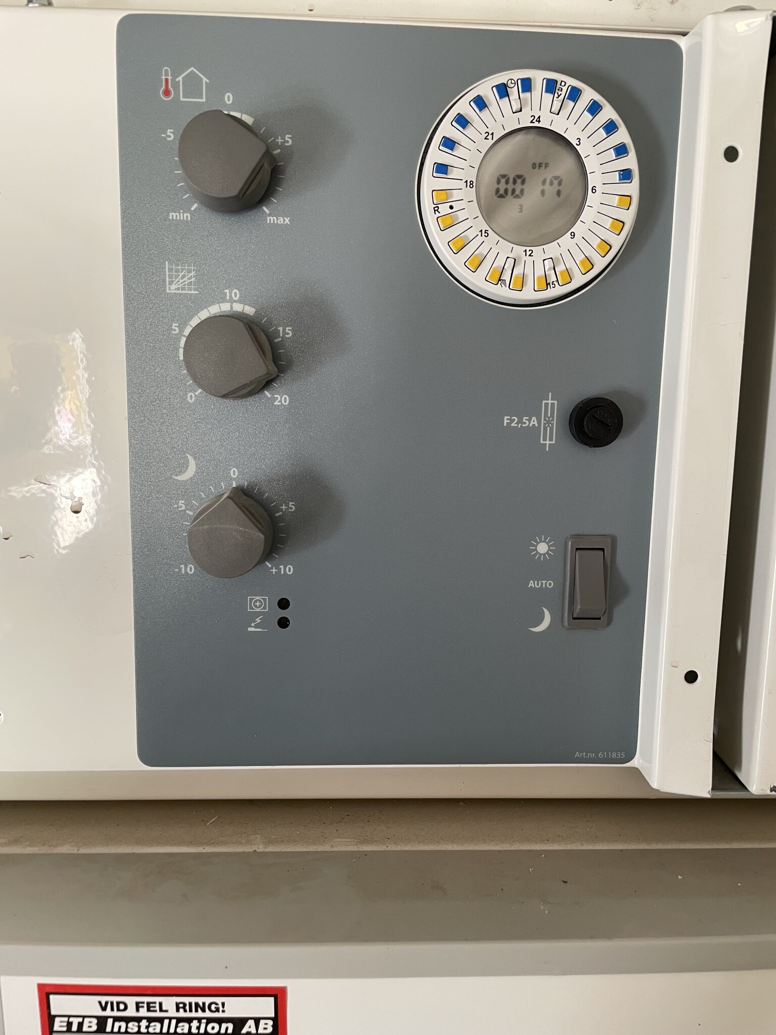 Så här ser det ut utanpå pannan. Jag har inte brytt mig så mycket om värmekurvorna innan, men det borde man väl. Pannan har haft de här inställningarna sen jag flyttade in för några år sen.