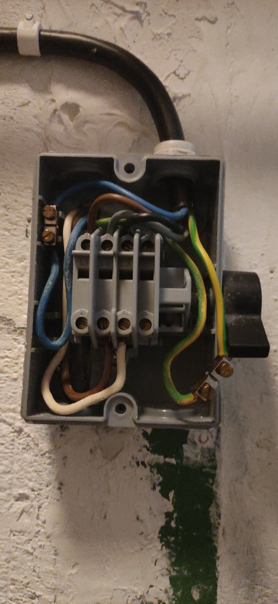 (När du slår på pumpen bakmatas N via pumpen och därför kan N anta allt mellan 0 och 230V mätt mot PE)