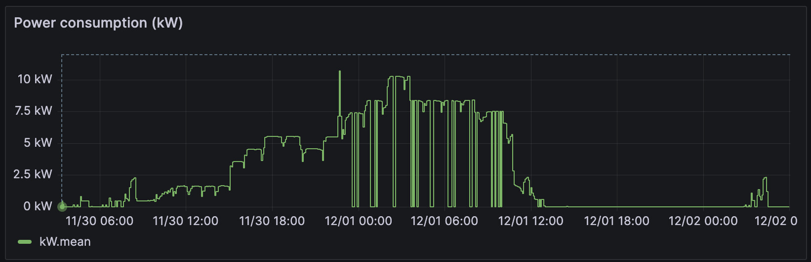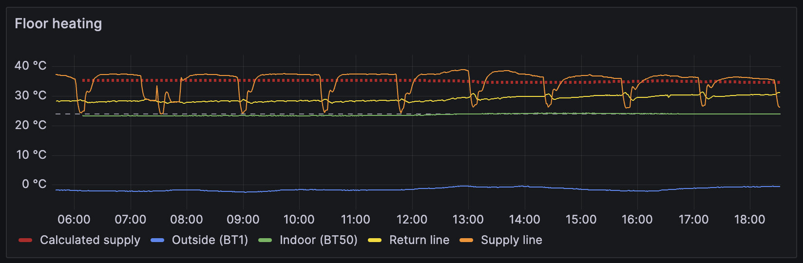 Pumpen är 8kW och denna dag hade vi -11 grader och pumpen gick till max effekt - men fortfarande samme mönster.