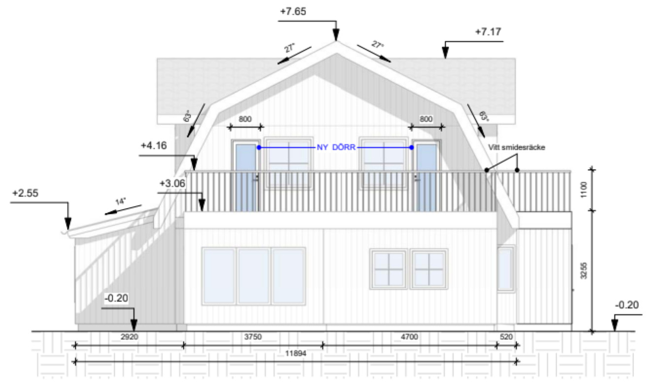 Vi har byggt ut vårt kök samt ett nytt uterum på nedervåningen och på taket har vi lagt trallgolv för att bygga en terrass. Nu söker vi efter den snyggaste lösningen för att montera balkongdörrar från övervåningen ut till terrassen. Kruxet är att golvet på terrassen sitter ca 30 cm högre upp än innergolvet på övervåningen. Hur hade ni gjort?