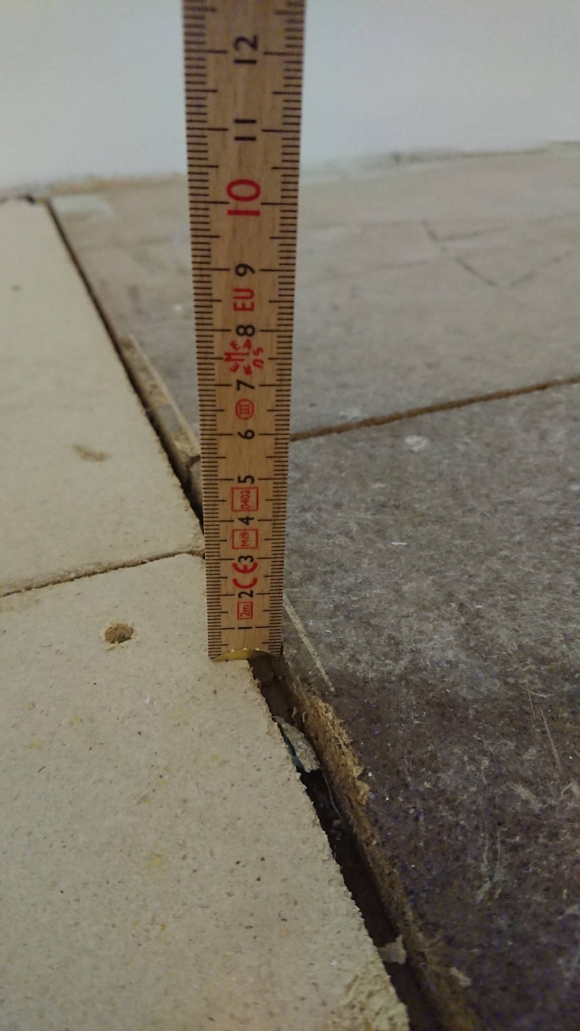 Jag håller på och renoverar ett rum i anslutning till garaget (ombyggt förråd som stulit en del Utrymme från garaget). Idag revs det gamla golvet men då upptäckte jag att det är en viss nivåskillnad mellan golvspånskivorna i den del av rummet som tidigare tillhört garaget och den del som tidigare varit förråd. Nivåskillnaden uppgår till ca 4-5 mm mellan de två delarna, se bild. Det varierar med vilken sida som är högst.