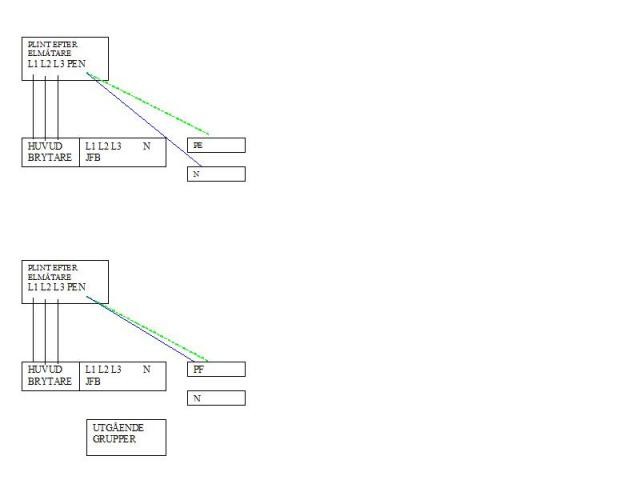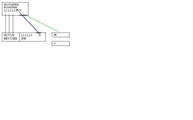 Vid 10kvm 4 ledare så har du en pen-ledare som går till jordskena och sen delas upp via JFB till en ny nolla. (10 kvm ä minimum i dagsläget för att ha en pen-ledare)