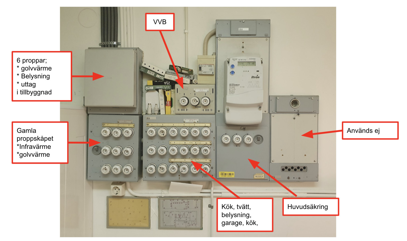 Huset är byggt 1969 och sen fick det en ovanvåning 1976 och sen ett tillbyggd vardagsrum 1998 så elcentralen har byggt ut.