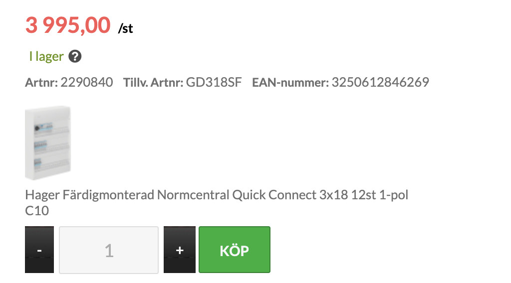 Men annars kan jag som alla andra rekommendera Hager, det är riktigt bra material. Har sett många grejer från såna lågprismärken som GDS, Roger, Biltema, med flera som har gått sönder. Och sen finns det inget ljusbågsskydd i dom vilket gör att om det skulle bli kortslutning så blir hela säkringen svartbränd