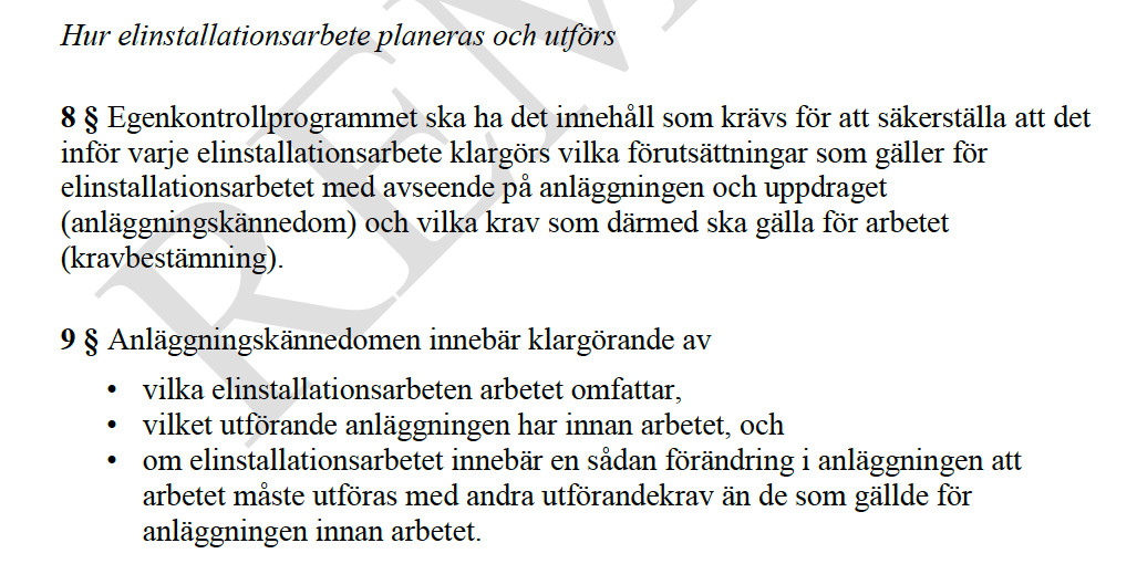 Är det följande del i förslaget (beslutat nu?) till Elsäkerhetsverkets föreskrifter om utförande av elinstallationsarbete och om elinstallationsföretag som du syftar på i din kommentar ovan?