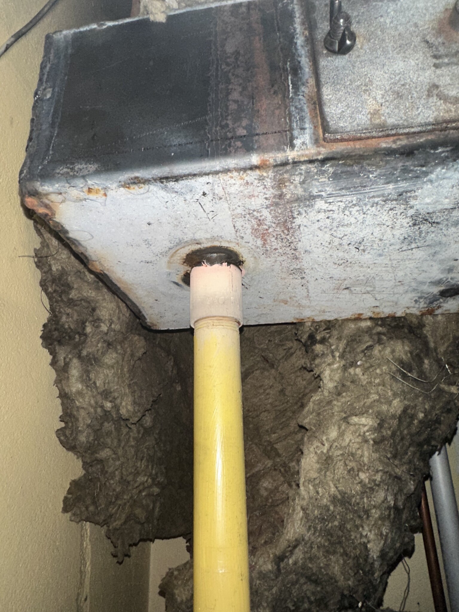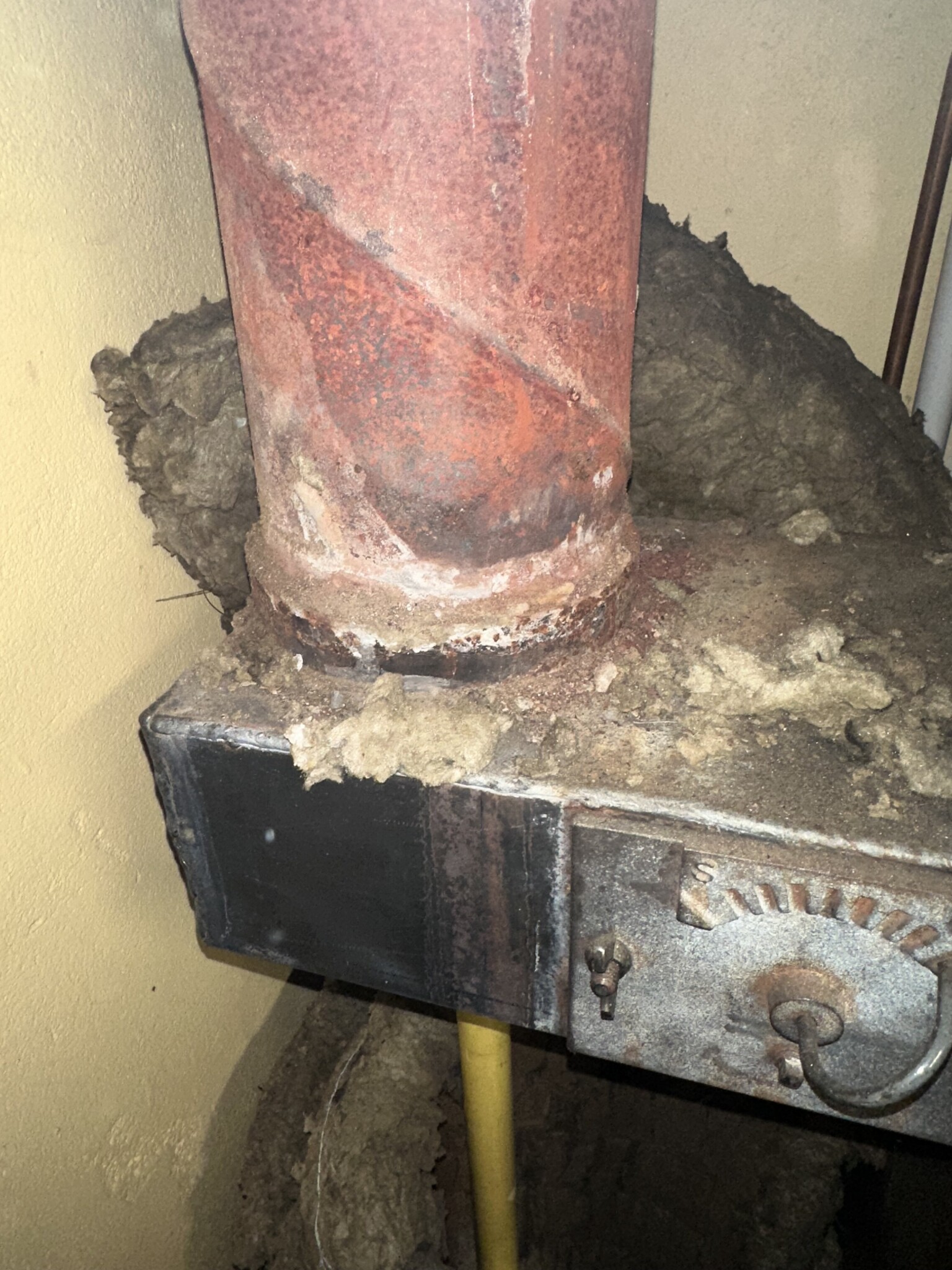 Är det insatsrör hela vägen upp. Nu vilar allt på pannkopplingen, det blir svårt att få till det, men går. Då ska det antingen skäras ett hål i röret för kaminen och i pannrummet kapas rökrör en bit ut mot pannan och blir en sotlucka monterad på det som är kvar. Annars måste det huggas upp mer och få till en förankring av röret i skorstenen, samt kapas. Bäst är att röret går ner i pannrummet och en sotlucka där, då behövs ingen sotlucka vid kaminen. Men klart lite tråkigt med rör i g:a pannrummet. Så bäst är att tala med en svetsfirma som kan säga något om utförandet på plats. Det lönar sig för dig att tala med dom som kan det med svetsning.
