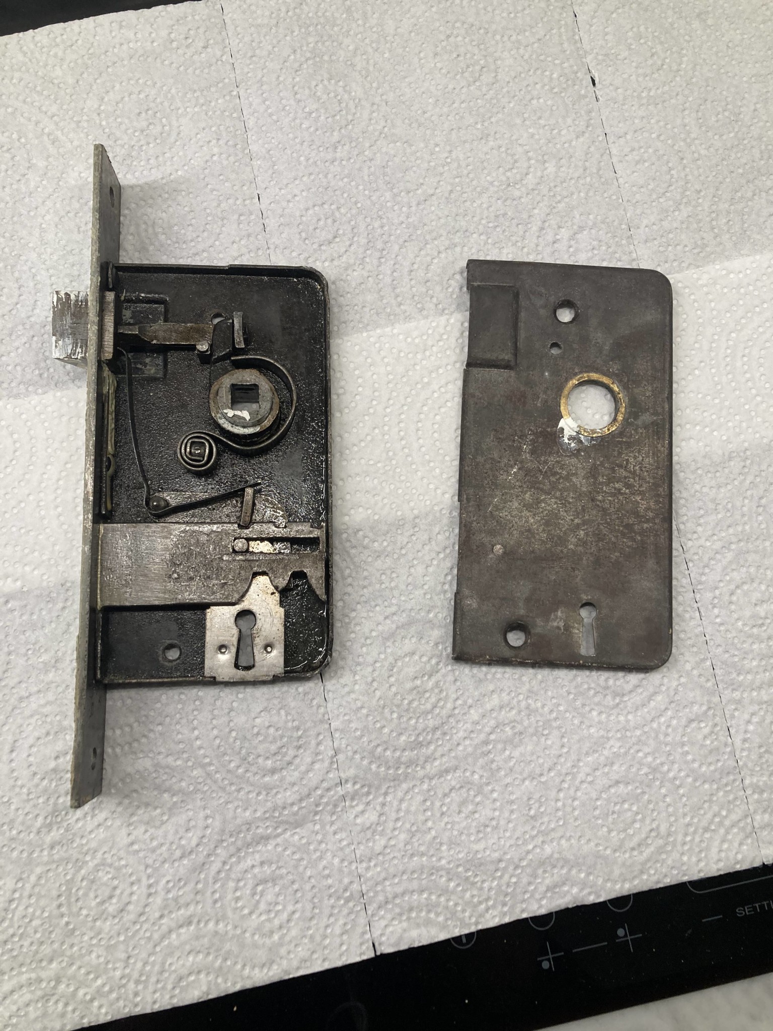 Det var ett gammalt FAS-lås på min dörr. Låskistan gick att lägga i målartvätt några dagar, rengöra och smörja upp. Fjädrar behövde inte bytas, och allt fungerar fint nu.