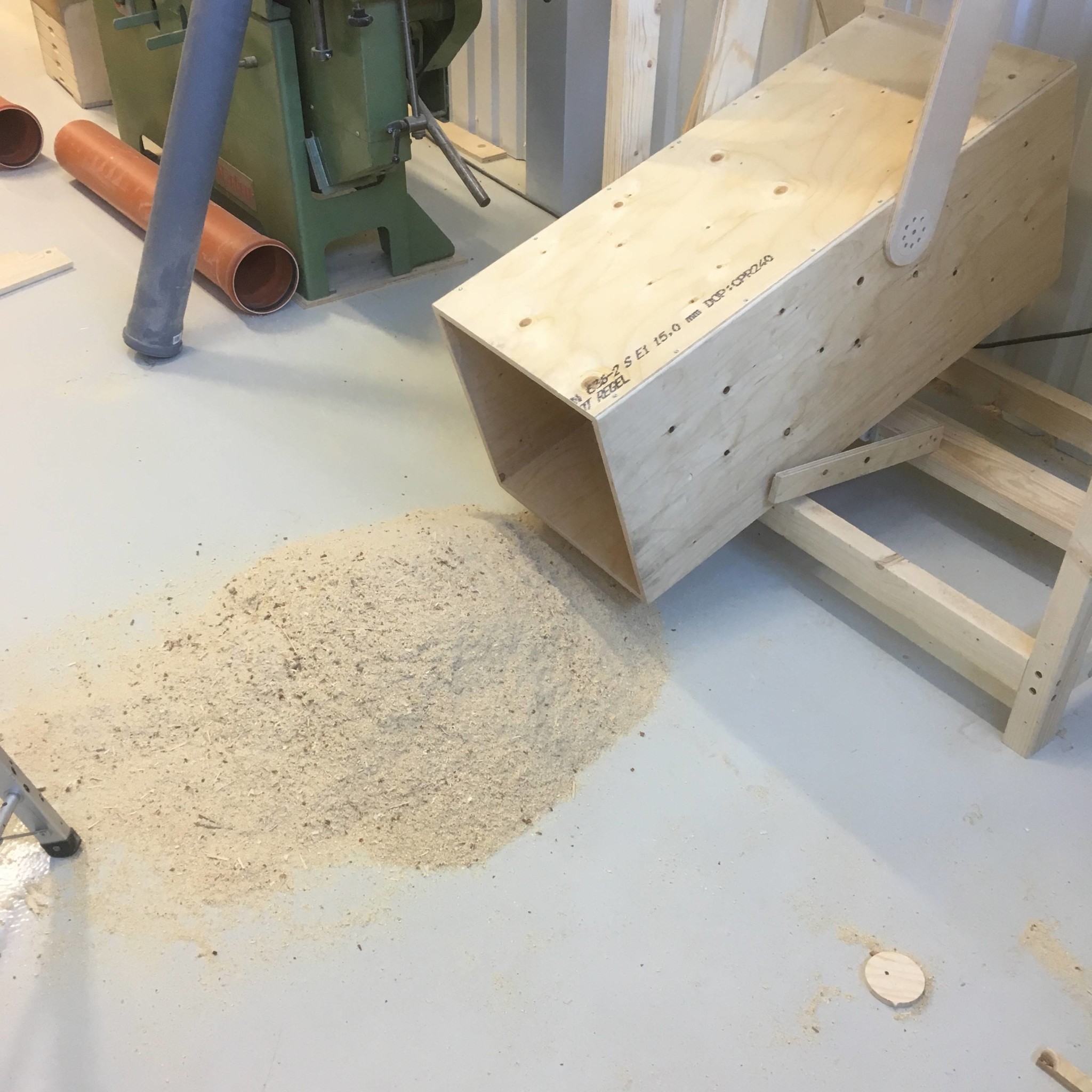 Kanske det redan är bestämt hur spånsugen ska tömmas, jag såg det skrevs om påsar då jag skimmade igenom de sista sidorna och själv har jag funderat på det också men just nu så har jag istället funderat på Matrjosjkalösning, en låda i en låda.