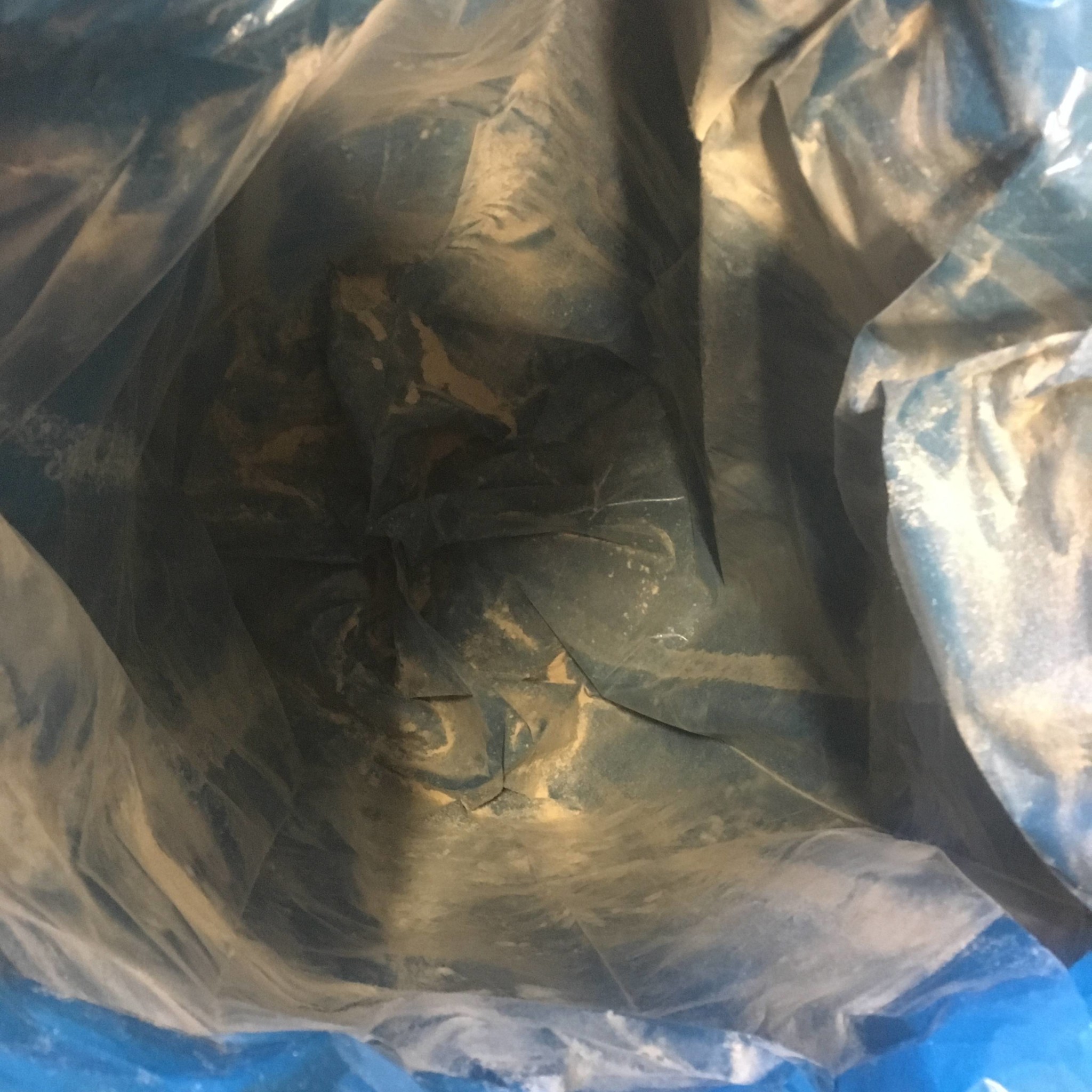 Tog ner säcken och kollade hu mycket som slunkit igenom. Var en svag missfärgning av damm på insidan. Det mesta av det kan egentligen lika gärna komma från dammfiltersäcken. Har inte gjort någon ansträngning för att rensa det.