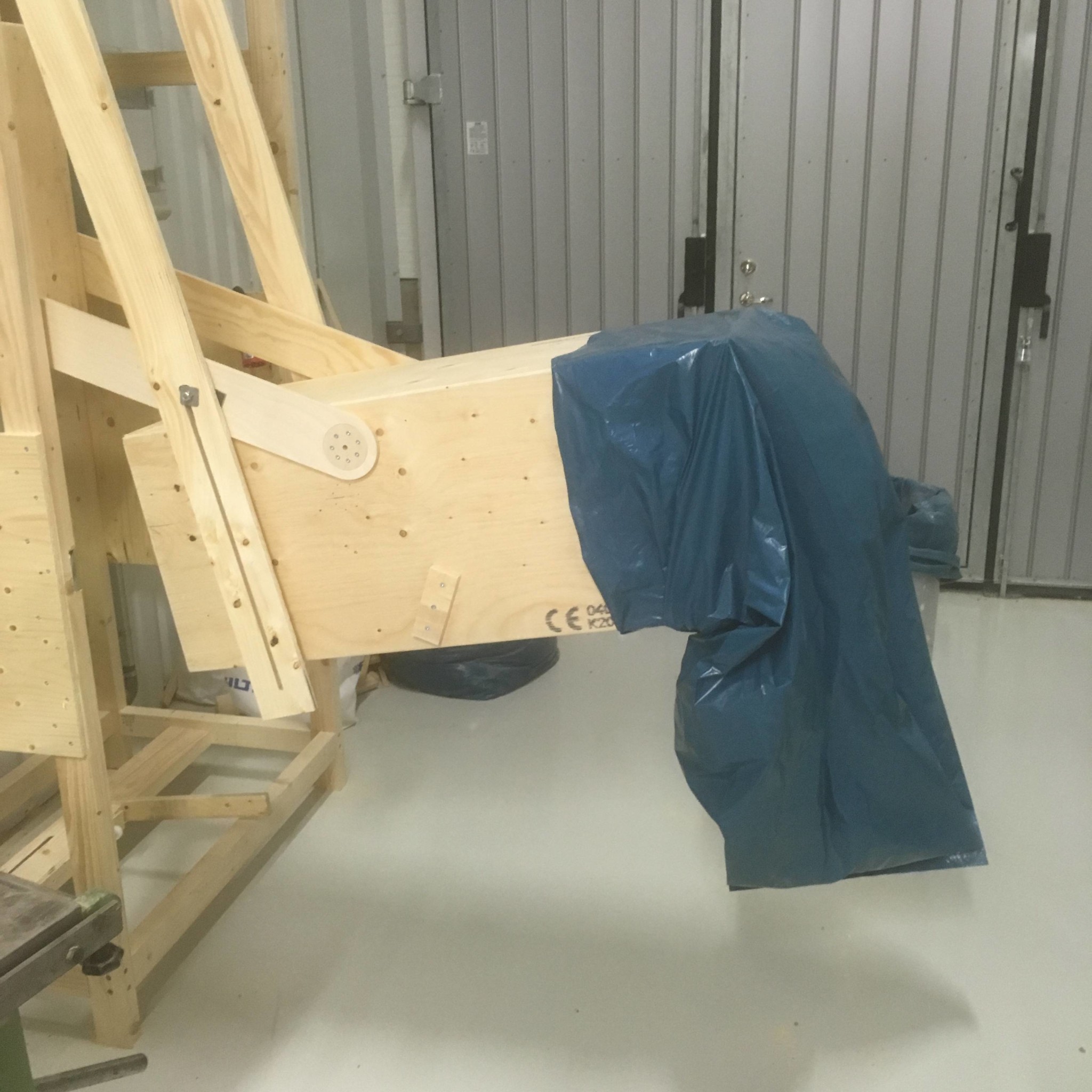 I eftermiddag kom upphakningsarmarna till spånkärlet på plats. Enkelt material. Lite plyfa, vinklar och m8-skruv.