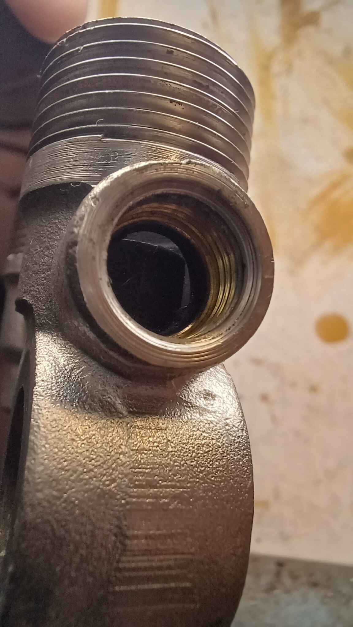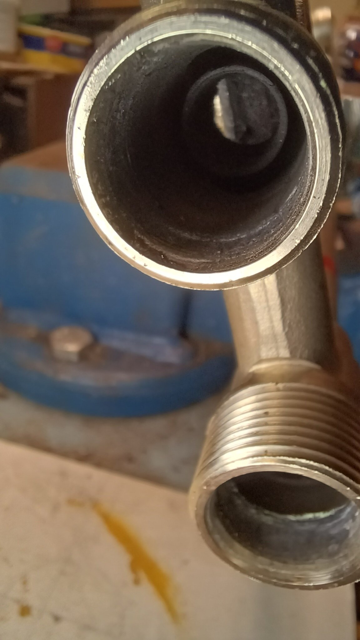 Strypningen som reglerar flödet mellan bypass och radiatorn är ej justerbar och består bl a av vad som ser ut som en kort rörstump. Mellan rörstumpen och omgivande gods är det 2 mm mätt med en borr, minimalt glapp så kanske 2,1 mm. Hålet i bypasskanalen är ca 7 mm i diameter i den synliga delen men oklart om den kanalen är 7 mm hela vägen då det inte går att inspektera utan att såga. Röret upp till ventilen är 12 mm utvändigt och 10 mm invändigt.