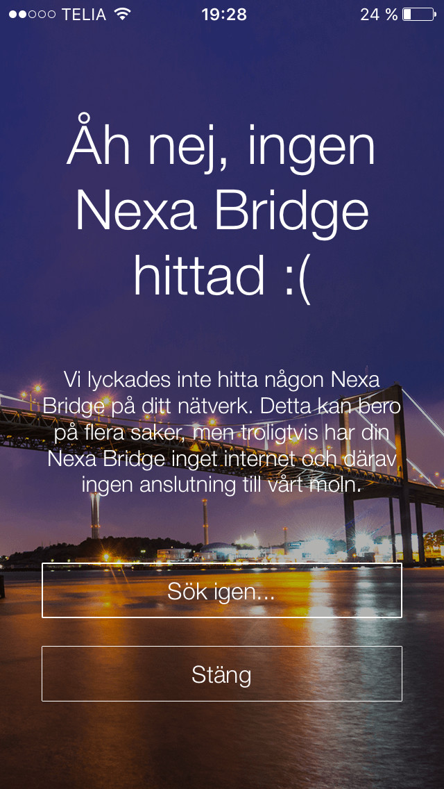 Hur ser det ut på din Bridge? Så här skriver Nexa i supporten om att Bridge inte hittas:Mick3 skrev: