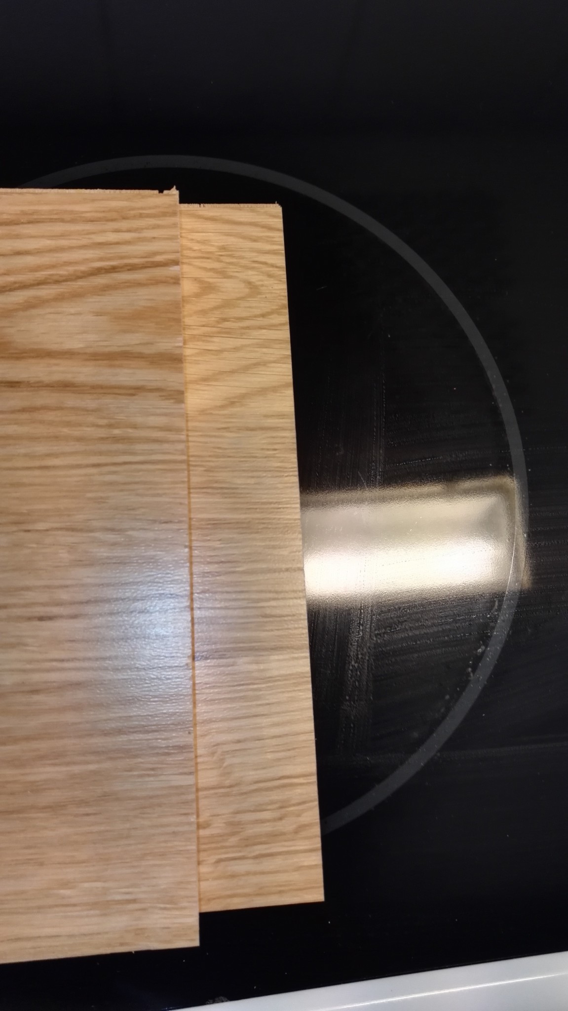 Hade exakt samma klinga på dewalten utan en en skråma på snitt ytan.. kanske vibrera bordet eller liknade. Tycker ej man ska få flisad yta på en blå Bosch med 48t.. och säger att man ej kan såga det handla ej om det. Eller är är klingan ja fick kass.. återkom gärna med recension..