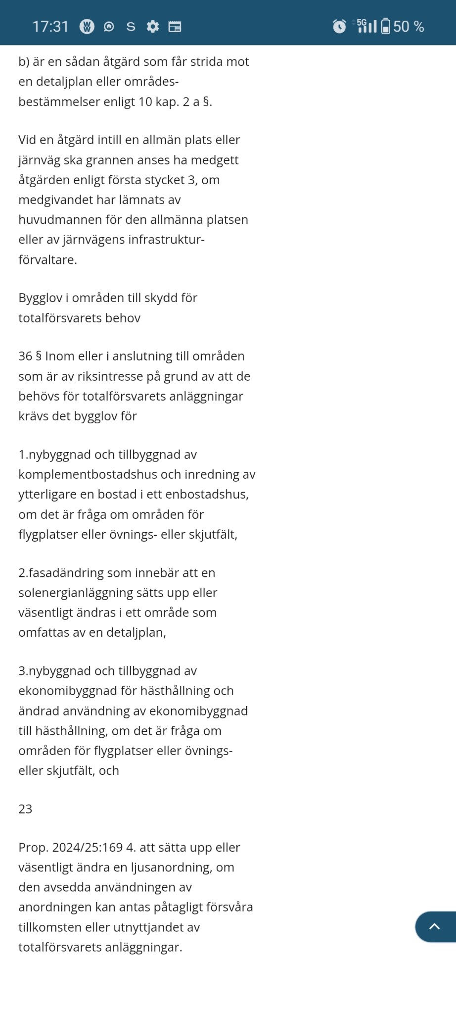 Tolkar det då som att bygglov inte krävs för i komplementbyggnader inom påverkansområde för totalförsvaret. Ska läsa ännu noggrannare ikväll men mottar gärna ytterligare tolkningar