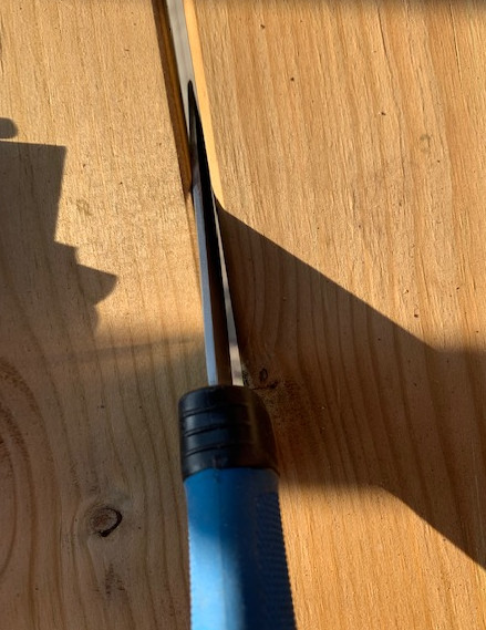 Hej vill förtydliga att det inte är 6 mm mellan trallvirket. Det är 126 mm kant till kant på trallen. Trallen (120 mm) när den är fuktig är kanske Cirka 124 mm. Kontrollmät ditt virke kommer du se. Väldigt fuktigt, färskt, svällt tryckimpregnerad. Kommer krympa...mäter du kant till kant kommer springan bli 2 mm. Men kommer krympa kring detta mått. Moraknivar brukar oftast fungera bra att sätta som mått på springan. Ibland använt två vinkelhakar också. Snickra lugnt![]()