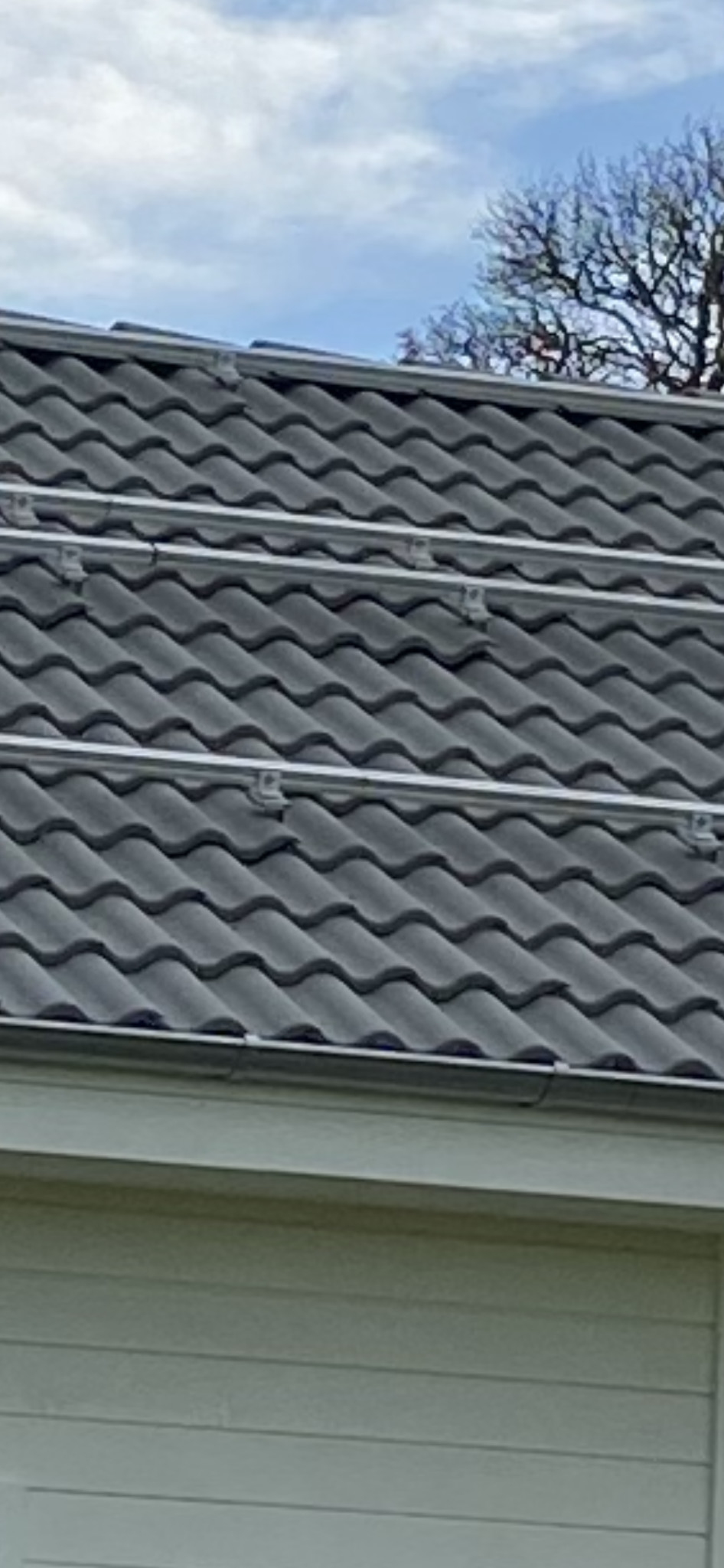 Vidare fråga om själva monteringen. Takkrokarna, hur ska de monteras enligt regelverk? Bifogar en bild på hur pannorna ligger efter montering. Hoppas det syns.