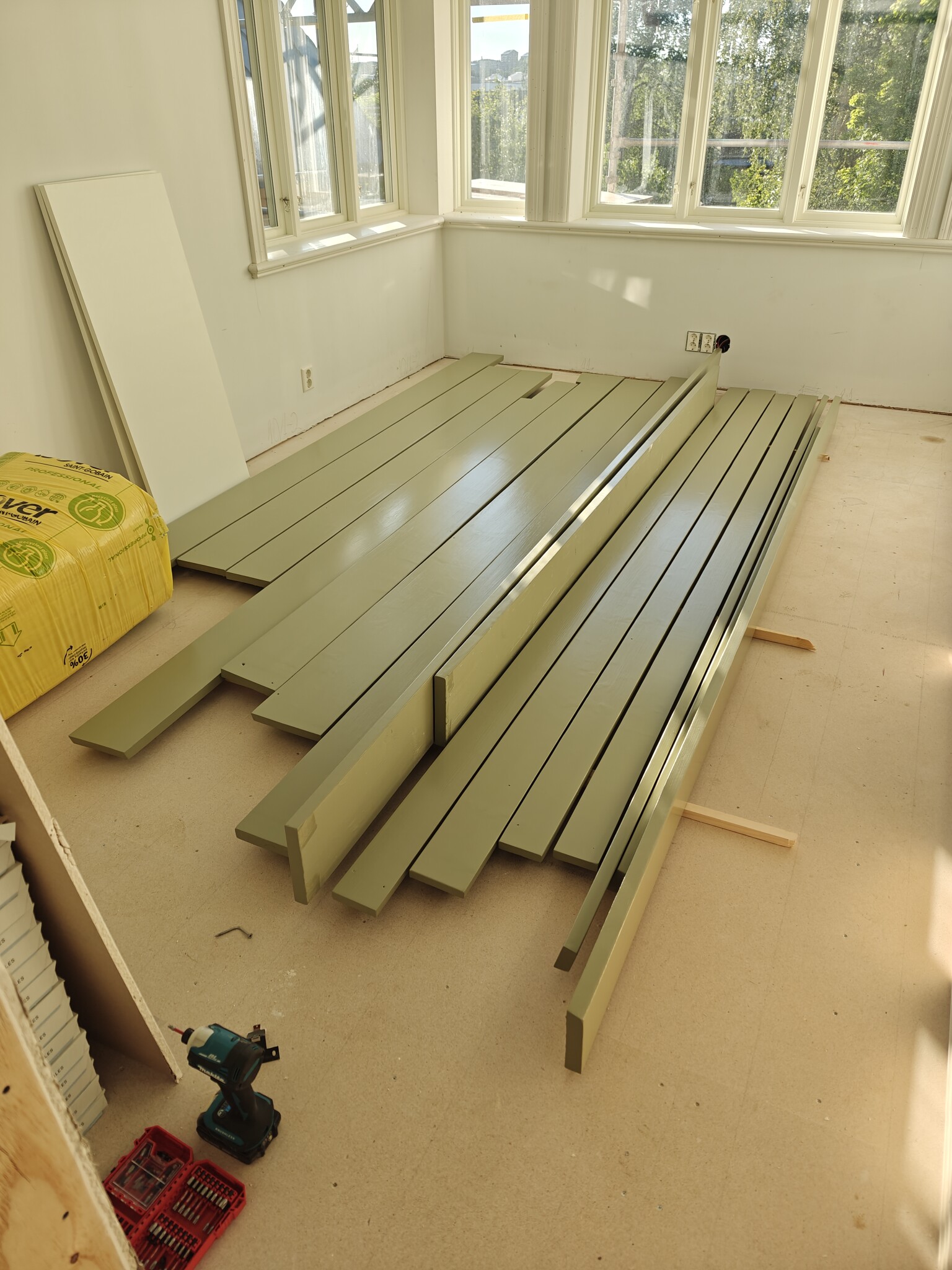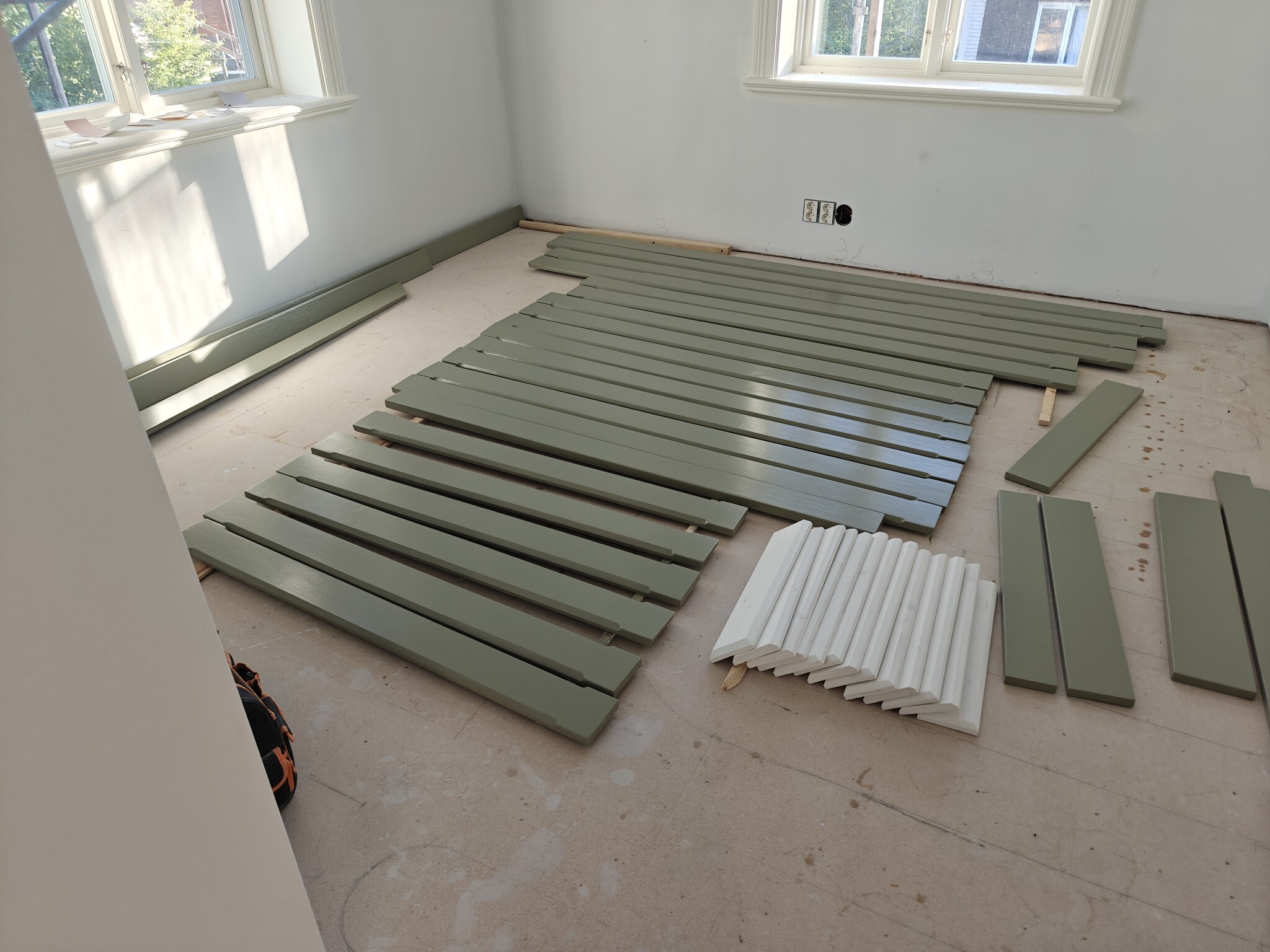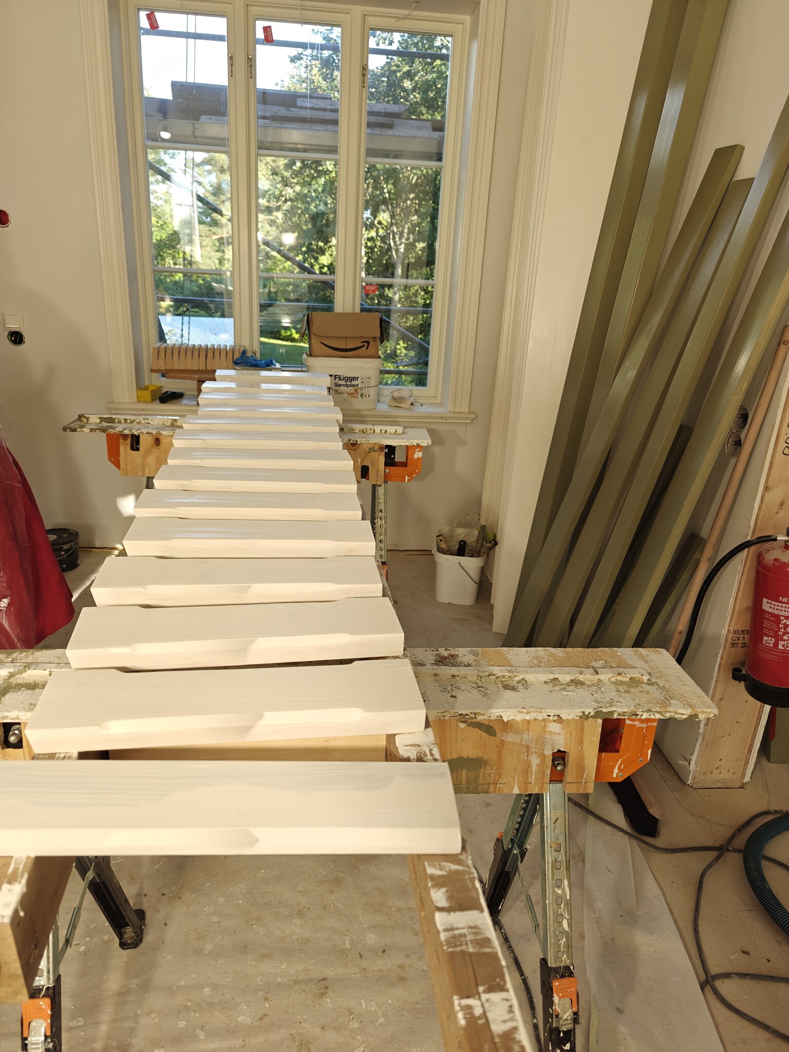 Det är sådant vi jobbar med nu. Nästan alla rum på övervåningen börjar nu fyllas upp med detaljer som vi målar inomhus.