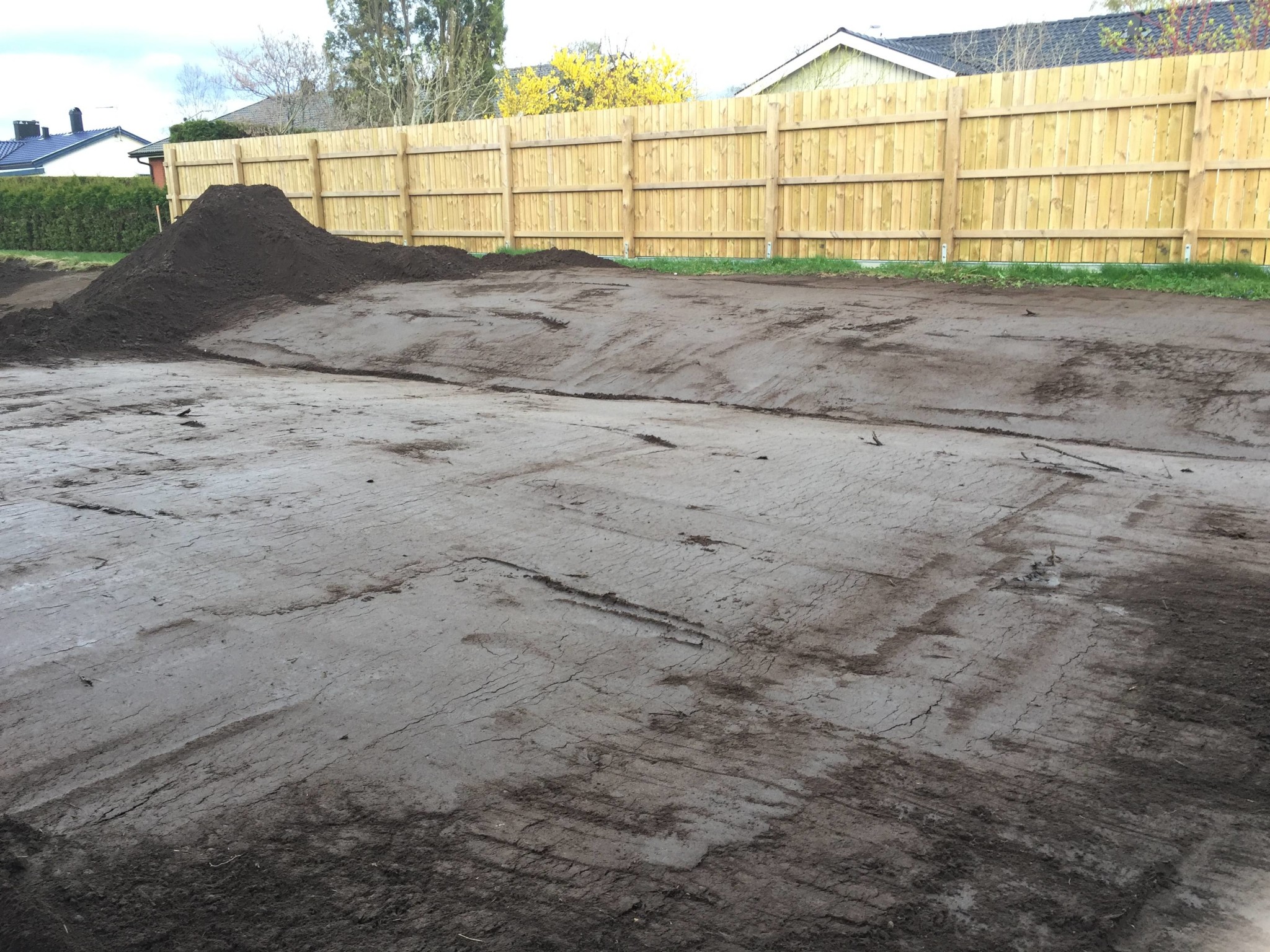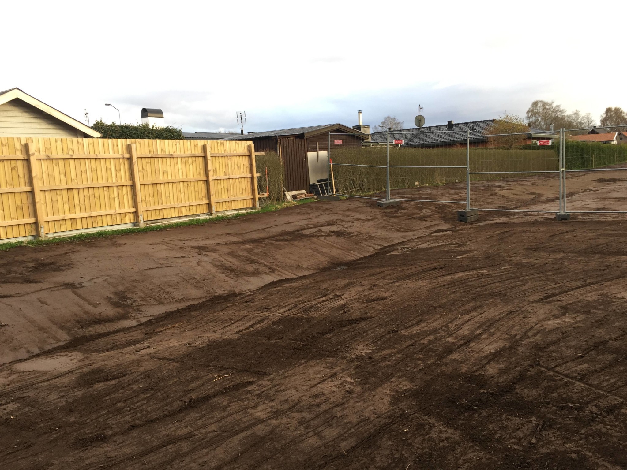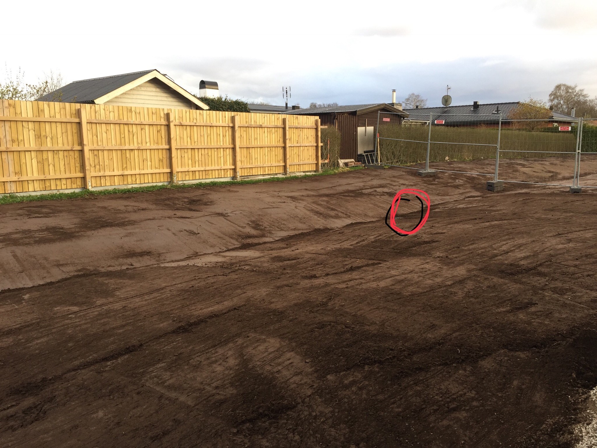 Vi håller på att bygga ett nyckelfärdigt hus via en totalentreprenör. När vi tittade till bygget idag blev vi chockade över den riktigt fula inbuktningen på trädgårdsytan. Vad tusan ska vi kunna göra av detta utrymme när det ser ut som det gör?! Det finns ett brunnslock där det är som djupast i den så kallade skyttegraven (se bild med inringning).