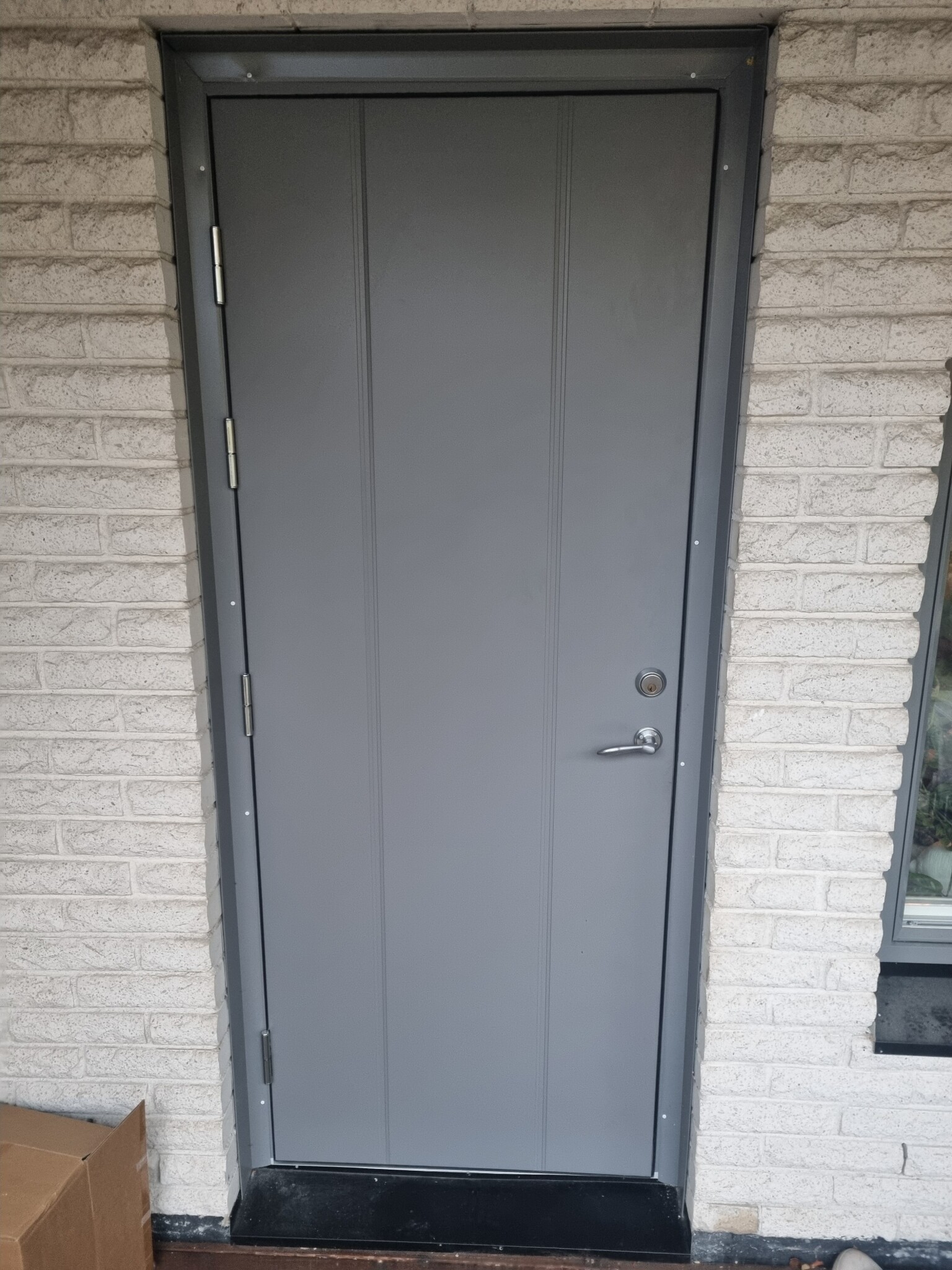 Vi har nyligen fått en ny ytterdörr installerad av hantverkare.