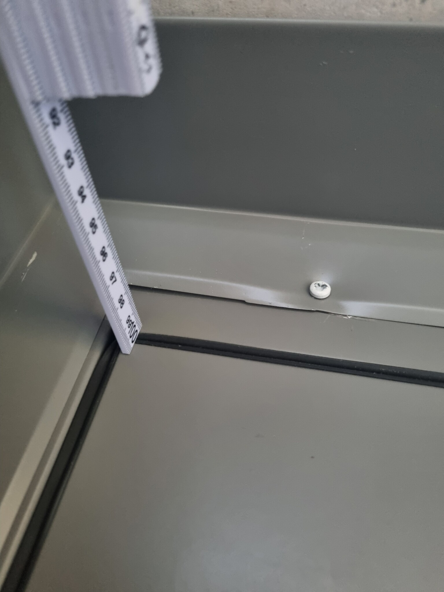 Bild på övre högra hörnet (från utsidan), dörren sticker ut ca 7 - 8 mm.
