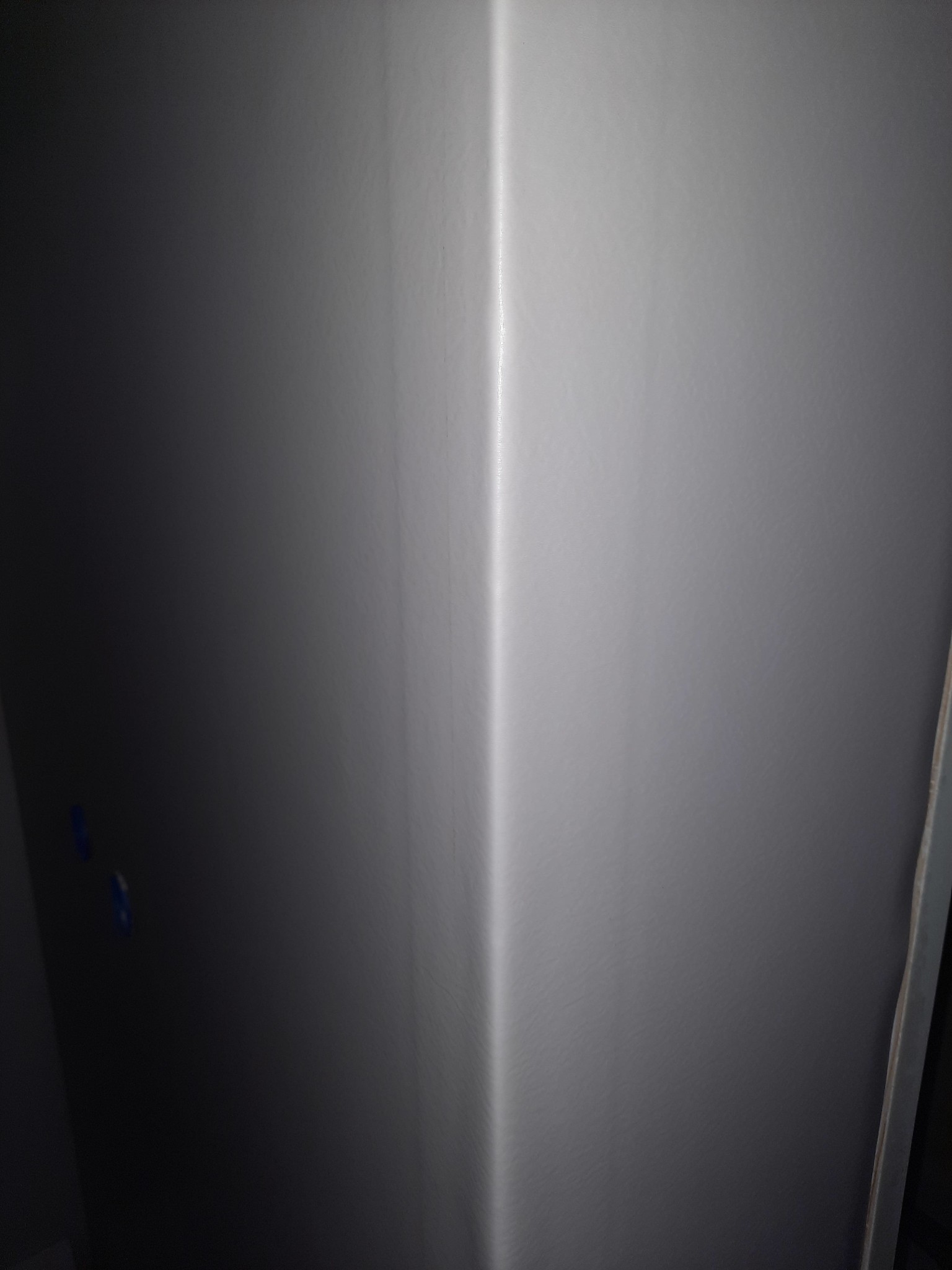 Spackling saknas helt på gipsskivan precis vid badrumsdörren, det är ett uppenbart fel så klart och ger upphov till ett liten synlig rand i mattan. Bifogar bild