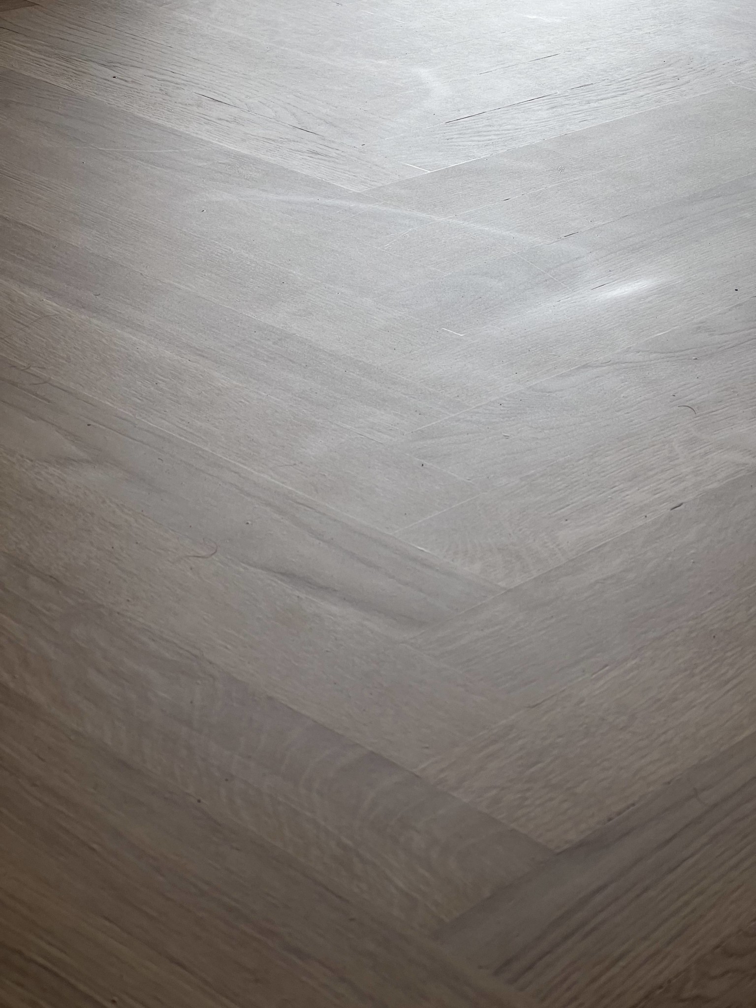 Man ser dessa märken tydligt i ljus, men i andra ljus eller andra vinklar tänker man inte på dem. Märkena går inte bort, försökte att polera lätt med trasa utan effekt. Golvet var härdat i flera veckor.