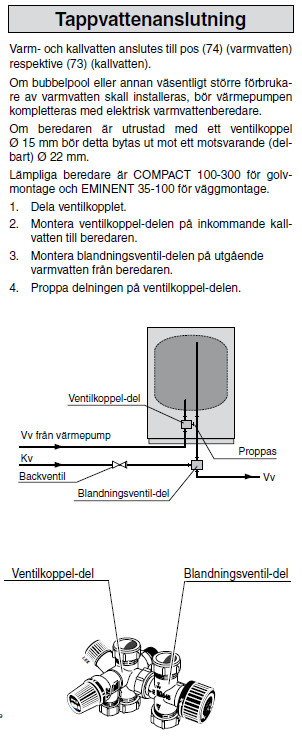 - Ja det är vad jag funderar på, men var/hur kopplas en sådan in? Om jag kopplar den på utgående anslutning från pannan, så vet jag inte hur det blir med det hela, eftersom då värms väl vattnet först av pannan och sedan en gång till av den externa beredaren? Eller hur ser man till så det inte blir "tårta på tårta"?Silver78 skrev: