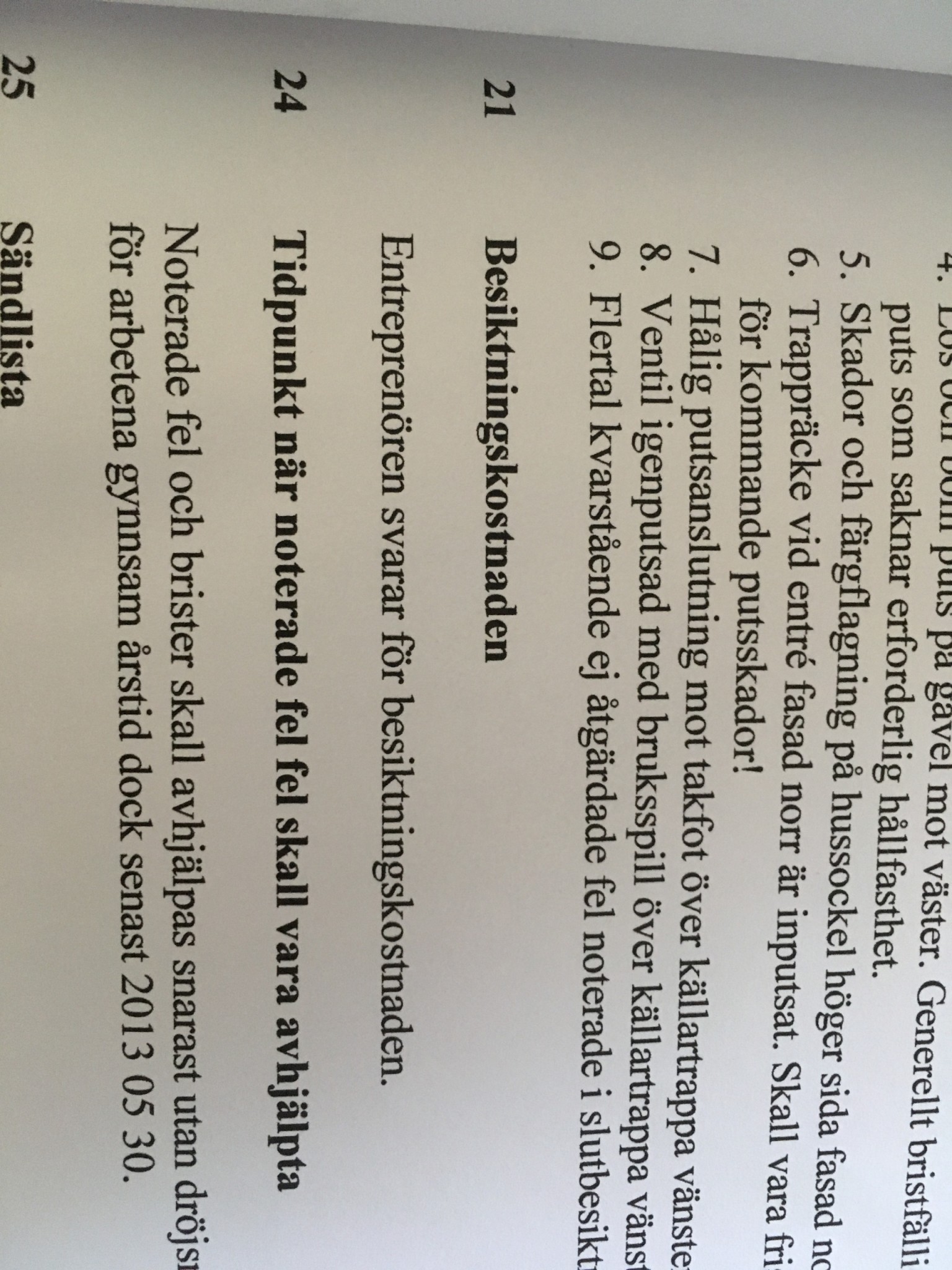 Besiktningsmannen sa det och företaget var tvungen att betala. Är troligtvis ngt som de måste följa om ni skrivit avtal innan. Att följa svensk bygglag etc.