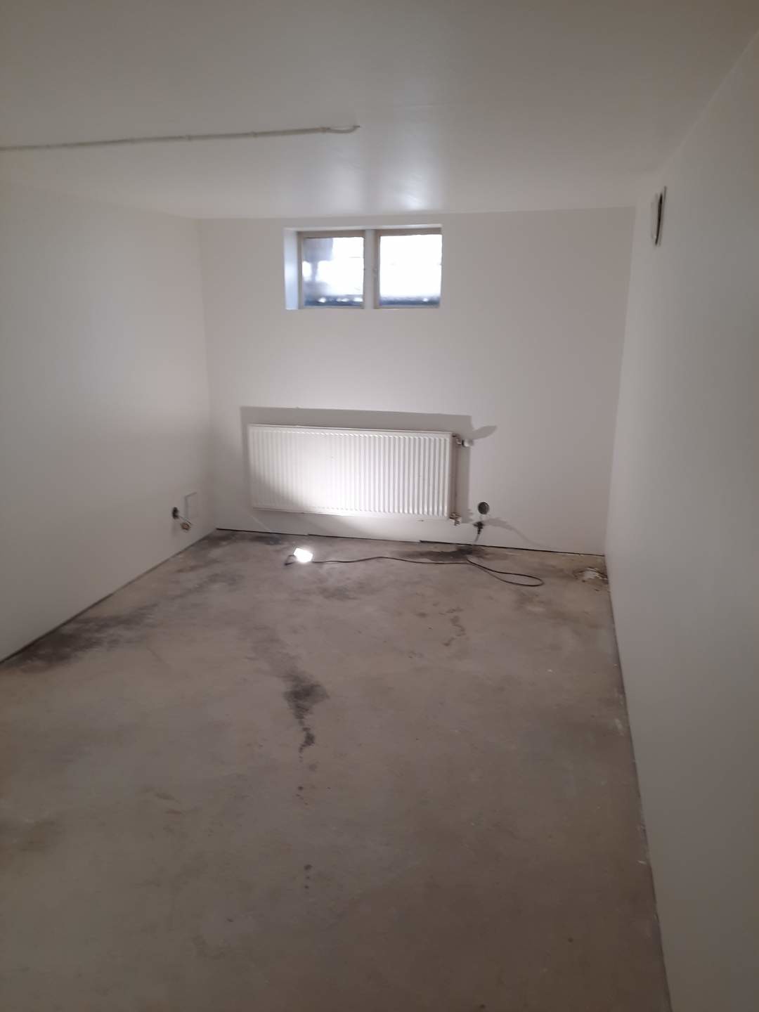 Där vi rev (hade hjälp av snickare för detta) blev det en del håligheter i golvet så man gjöt nytt betonggolv åt oss för att jämna till allt.