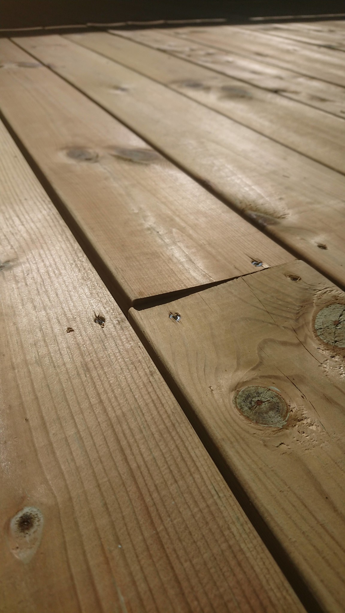 Jag är jättenöjd med hur det ser ut i stora drag, förutom fusket så som oskruvade brädor som lyft sig, sprickor m.m.