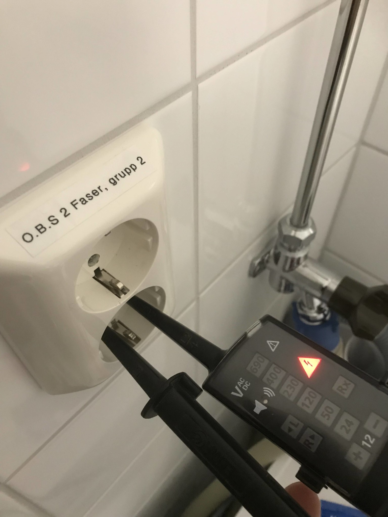 Uttaget funkar inte alls. När man lägger mätaren mellan bägge uttagen visar den på 400. Men visar enligt första bilden när jag lägger in mätaren på ett uttags fas och nolla. Kan det tyda på att fasen är inkopplad på bägge uttagen - men att det är något fel på nollan?