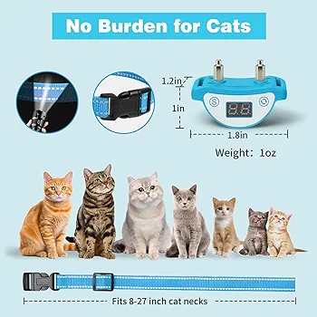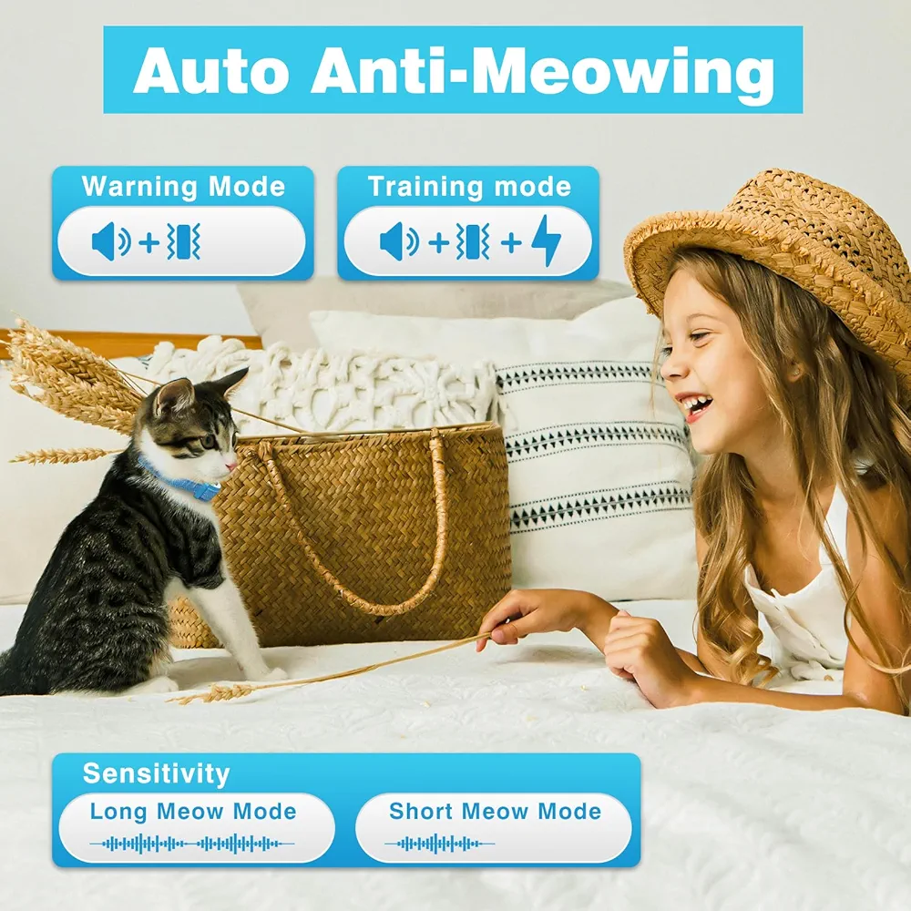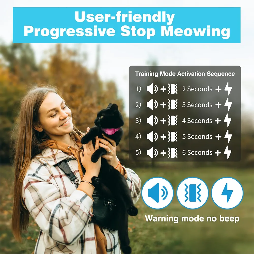 PaiPaitek Cat Shock Collar, Beep, Vibration and Shock 3 Modes to Auto Stop Meowing, Lightest Safe Shock Collar for Small Cats 5-15lbs & Medium Large Cats, Waterproof & Rechargeable