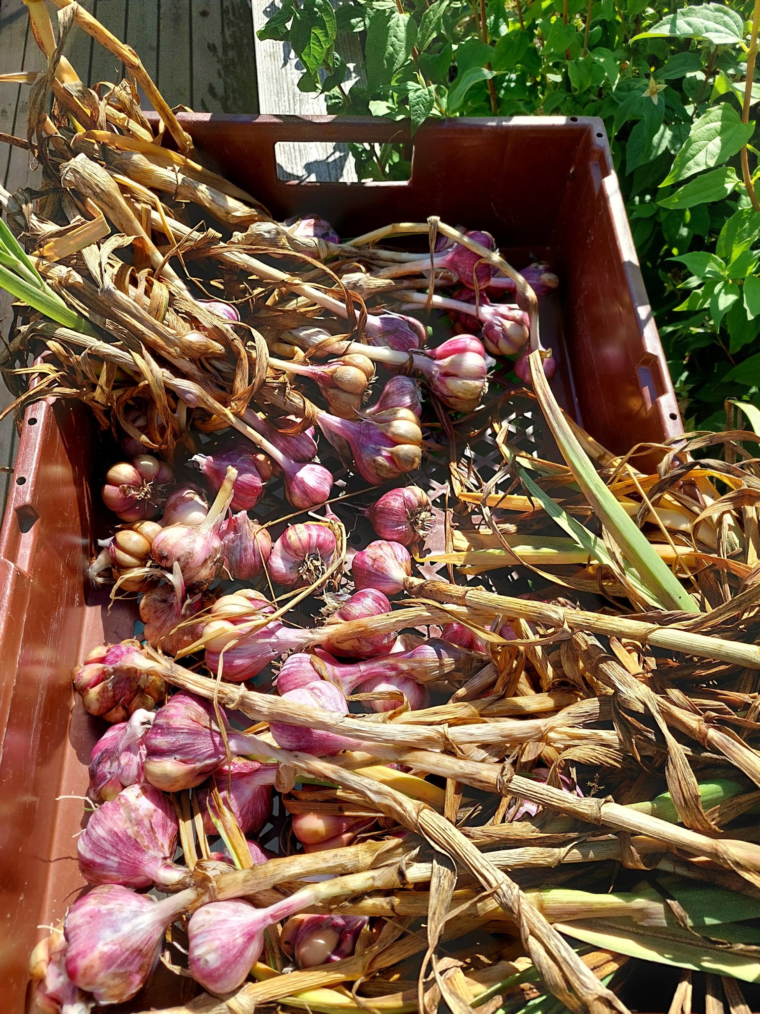 Tyvärr hann tre kålhuvuden spricka och börja ruttna under semestern. Men i övrigt riklig skörd.