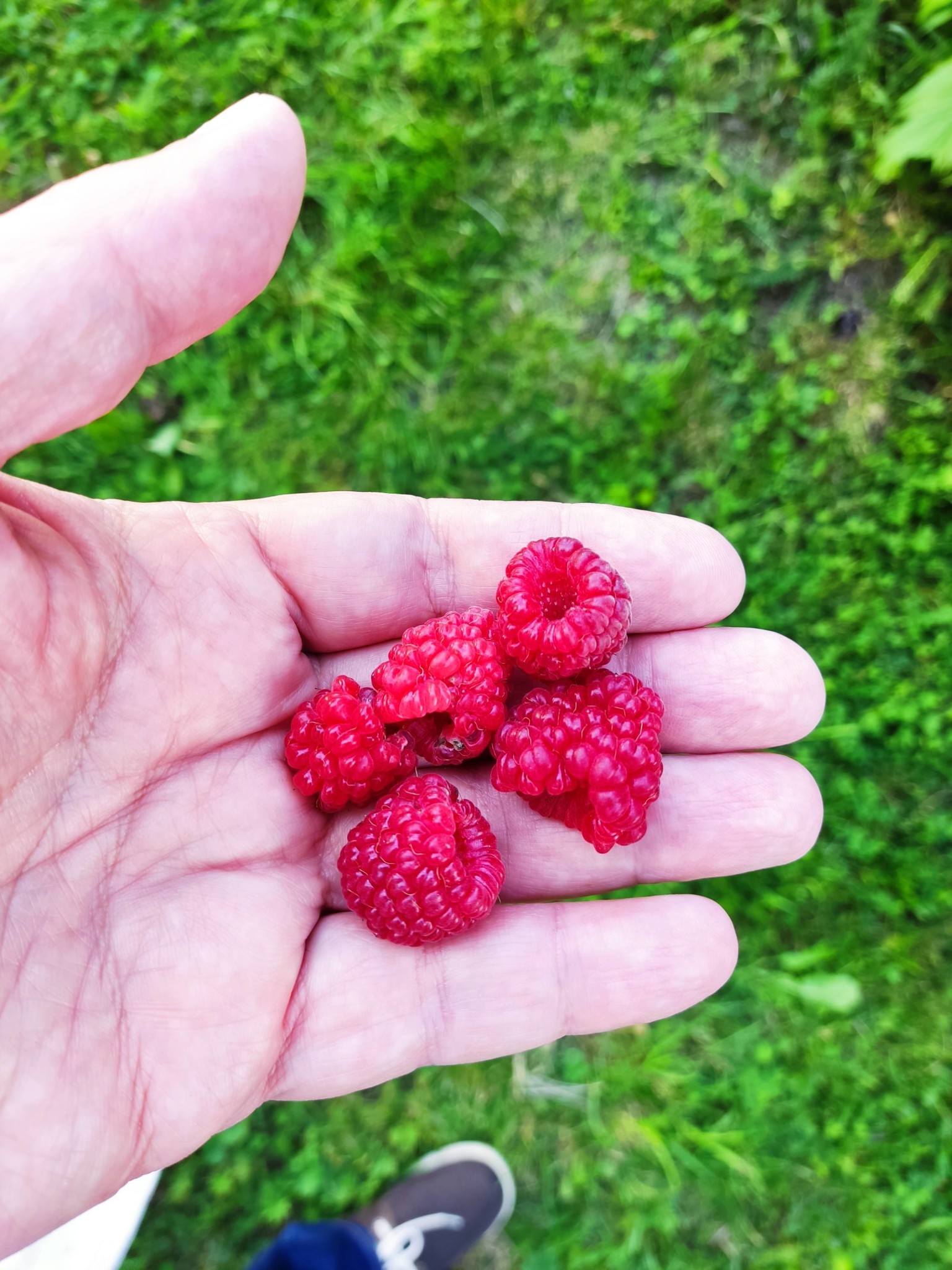 Vi skördade 4 st. hallon idag haha.. jag frågade maken om det fanns och skörda.. "jaaaadå" sa han glatt och tog en burk och gick ut... han var tillbaka in max 3 min senare och jag frågade om han ens hunnit till busken..